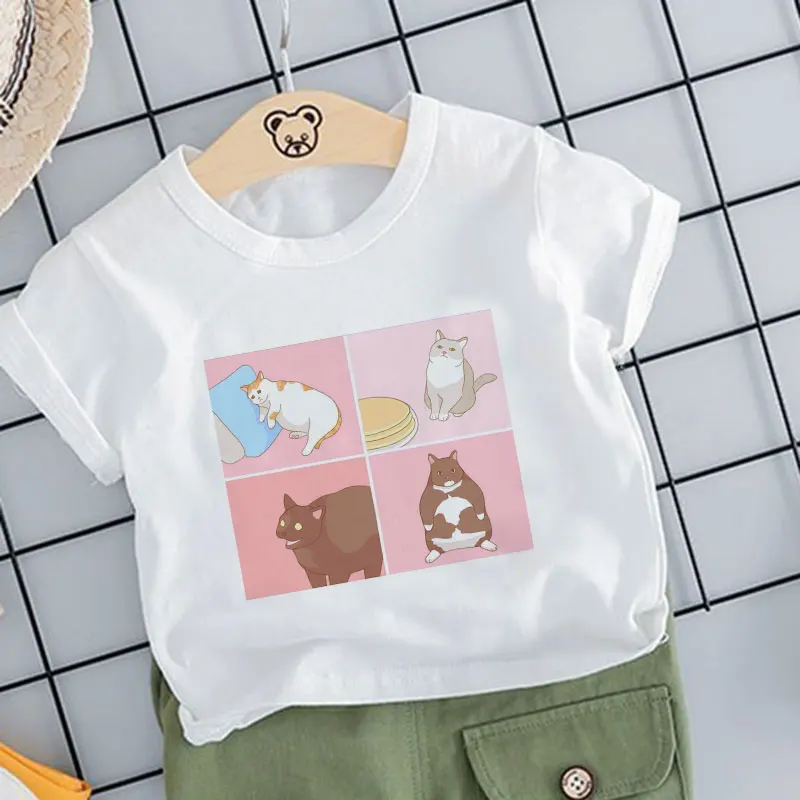 Kawaii толстая футболка с котом, Детская Новая летняя Милая модная ...