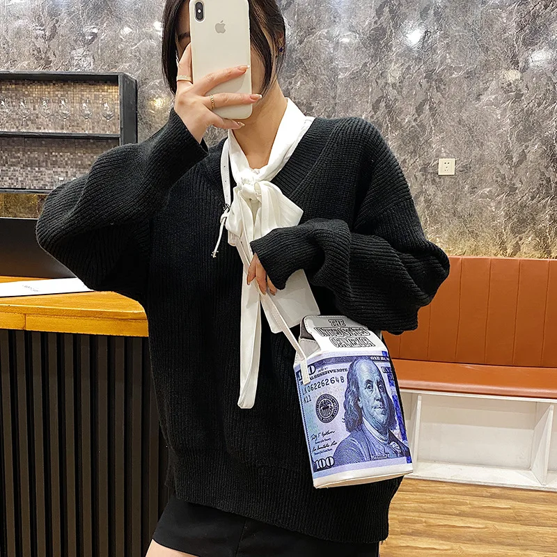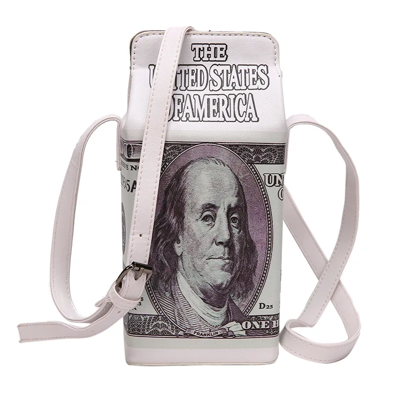 Забавная кошелек с изображением доллара, молочная сумка через плечо для женщин, модные кошельки и сумки, сумка через плечо, клатч для девочек из искусственной кожи