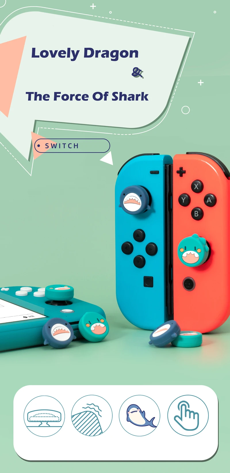 Силиконовый чехол для джойстика Dragon Shark, крышка для джойстика NS Rocker Cap s, аксессуары для Nintendo Switch LiteОсобенности:-Милый преувеличенный дизайн, маленький динозавр и внешний вид маленькой акулы добавят больше удовольствия вашей игре-Трехмерная силиконовая Кепка-рокер с тематикой зверей, милый дизайн ушей, уникальная и выдающаяся-Высококачественный силикон, мягкий силиконовый материал, нежный, приятный для кожи, удобный и безвкусный, не деформируется при натирании-Оригинальная машина 1:1, Открытие формы, плотное прилегание, полностью обернутая крышка рокера, простая установкаСпецификация:Материал: силиконПрименимые модели: для Nintendo Switch / Switch LiteЦвет: как показаноВес посылка: 25 гПосылка: 8,5 см x 9,5 см x 1,5 смПосылка входит:4 x колпачок для захвата большого пальца