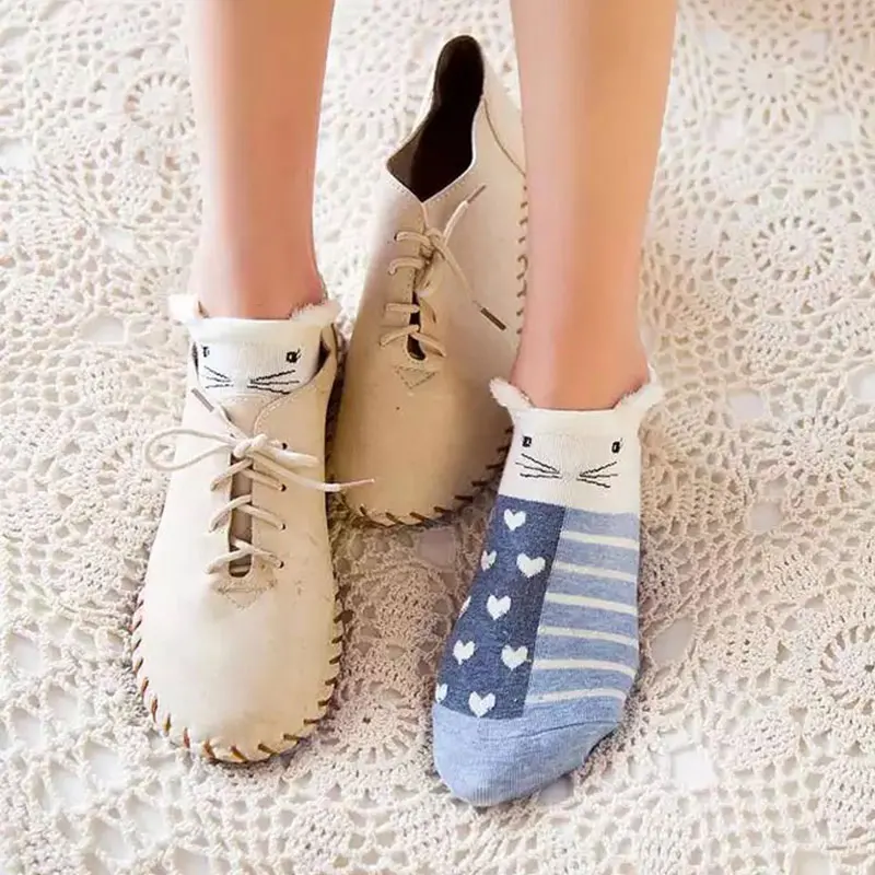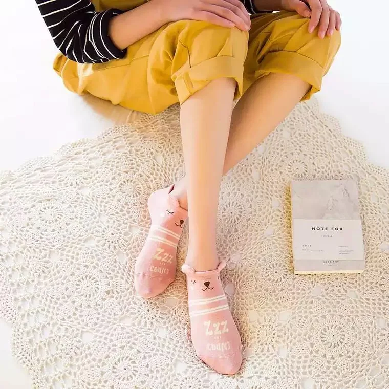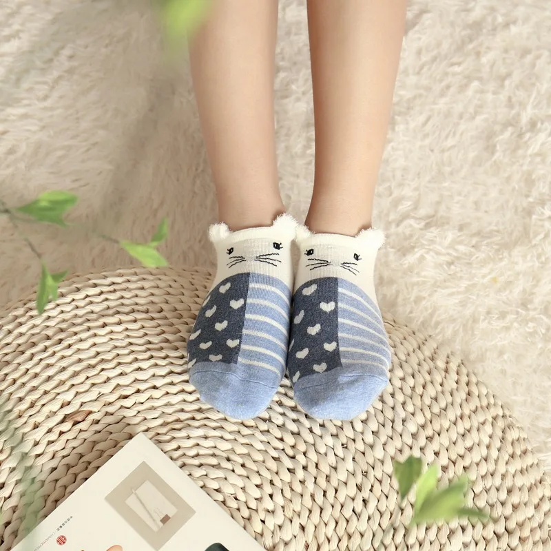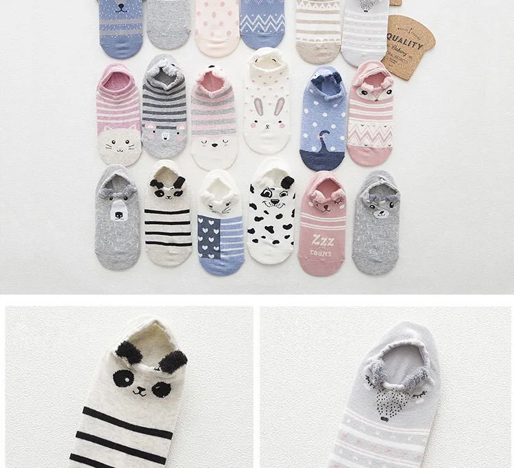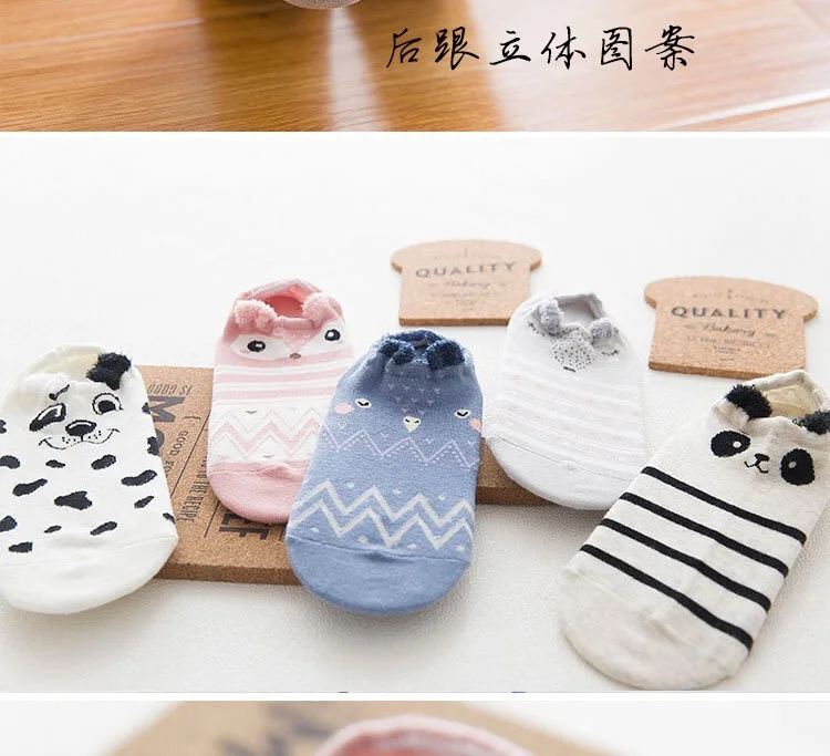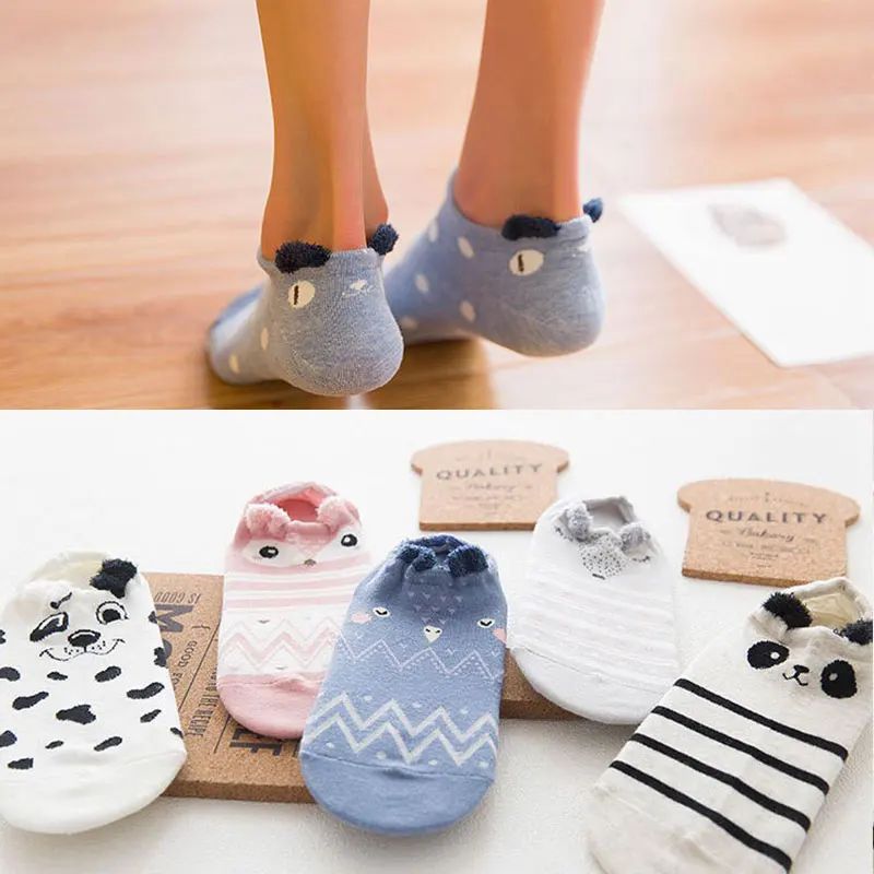 5 пар, милые детские носочки из хлопка с принтом животных из женские носки для малышей; Комплект с короткими Kawaii Cat носки-тапочки с низкой лодыжкой с изображением персонажей мультфильмов, с рисунком женские летние носки в упаковке