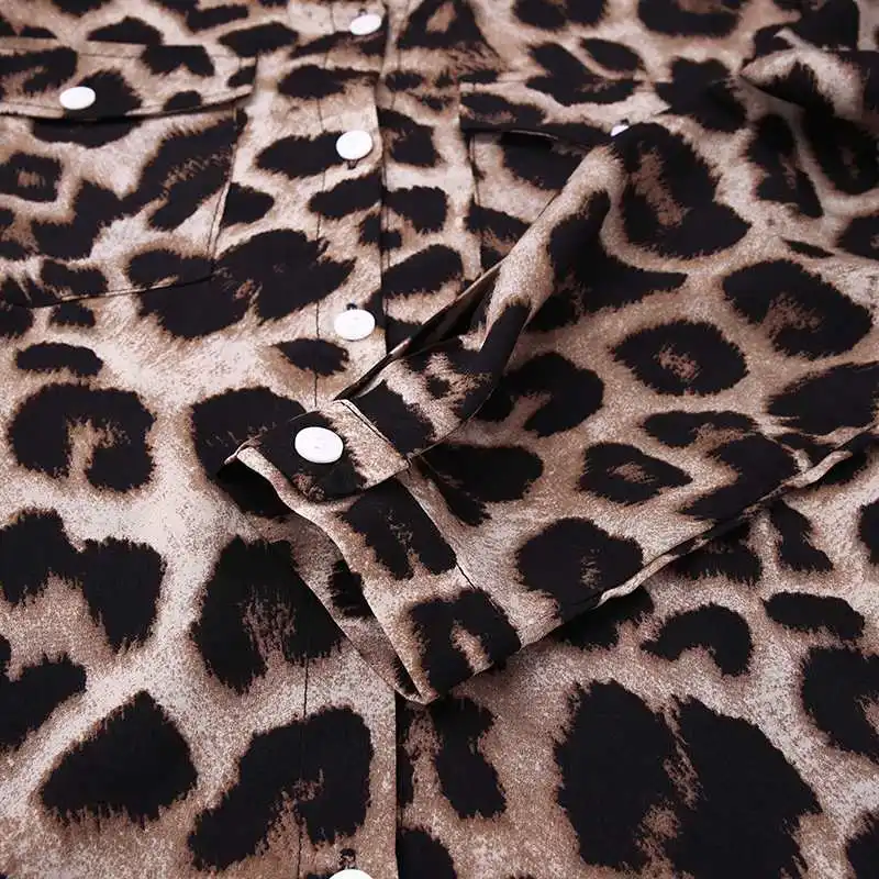 Платье-рубашка женское с леопардовым принтом, модное повседневное в...