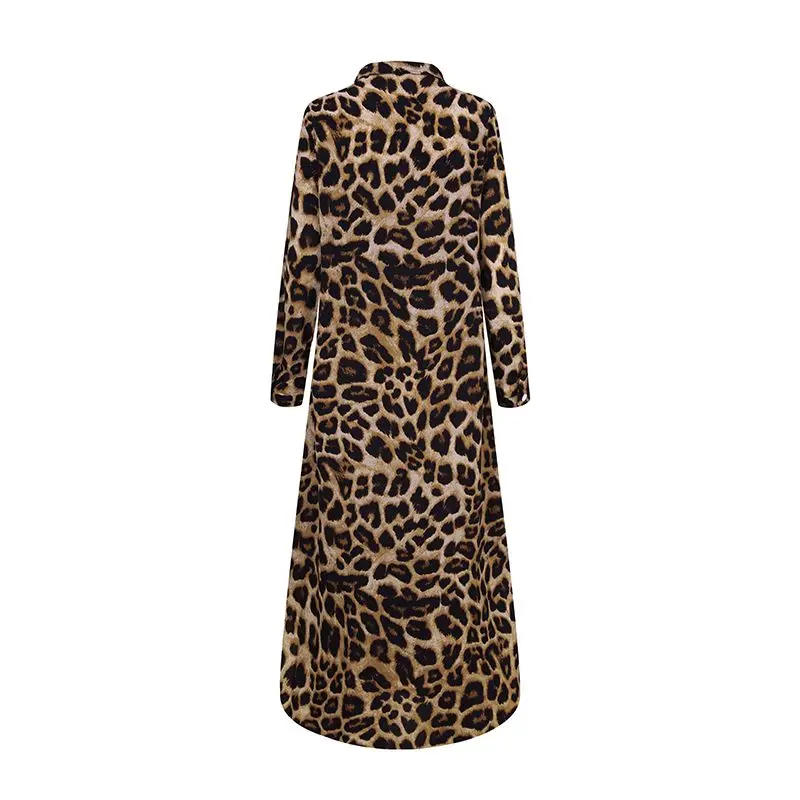 Платье ZANZEA женское с леопардовым принтом, повседневное длинное м...