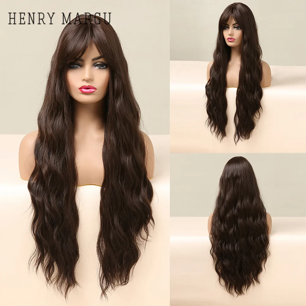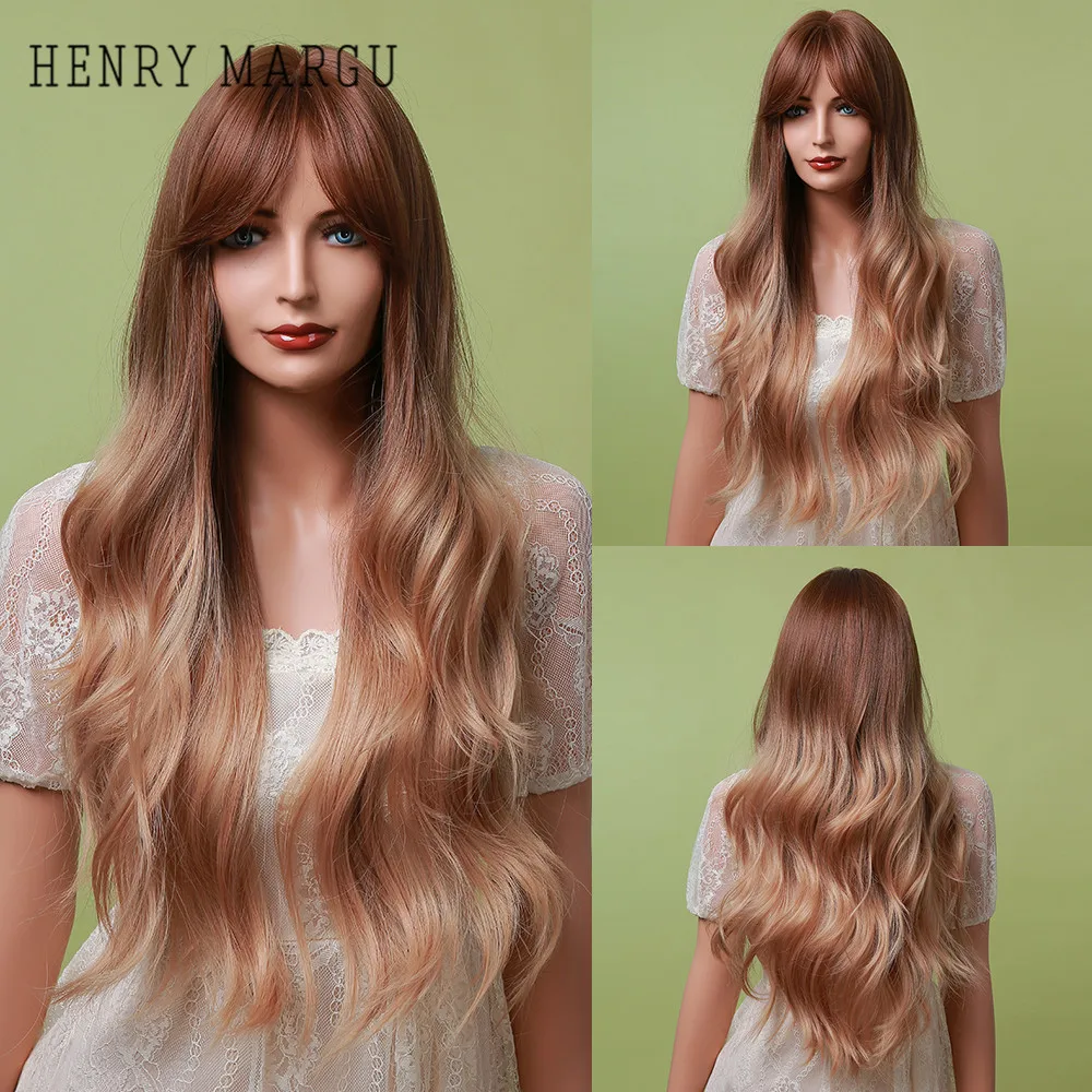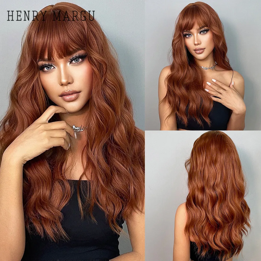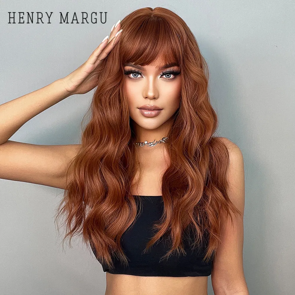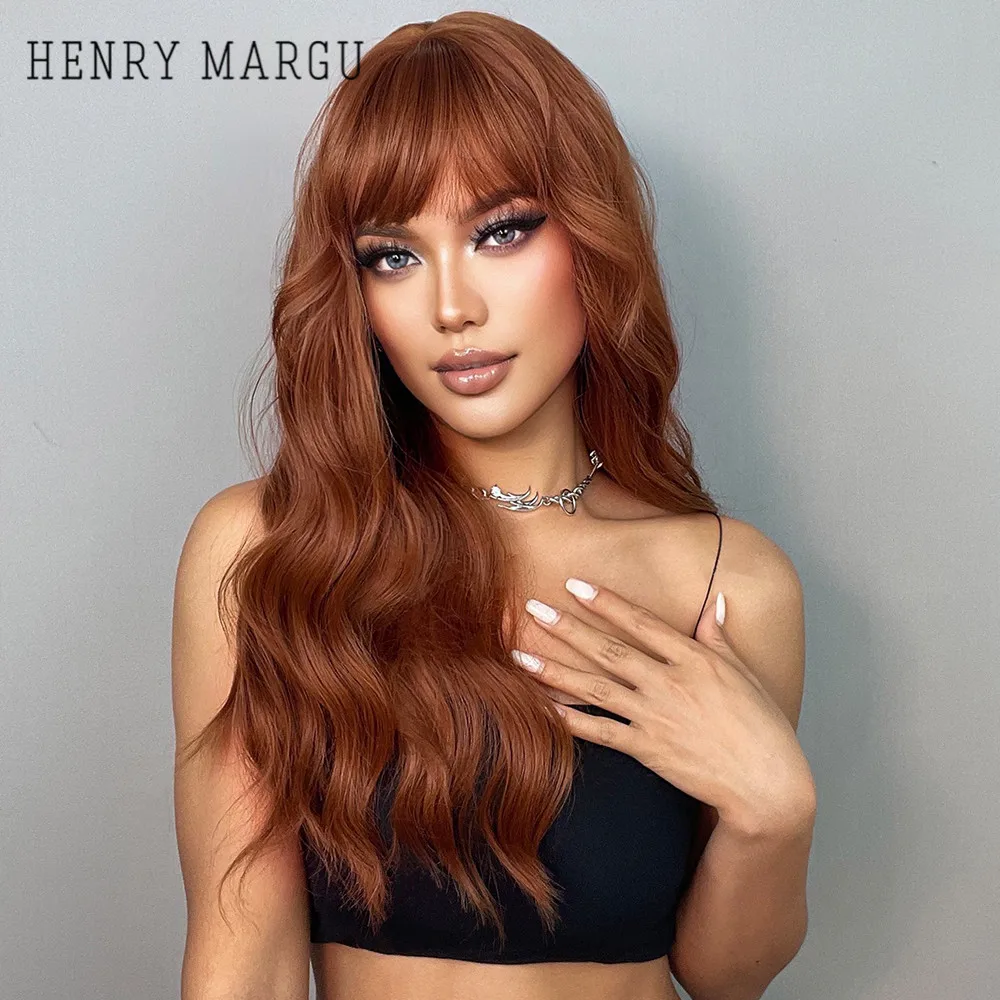 Длинные волнистые парики HENRY MARGU, красные, коричневые синтетические парики с челкой, кудрявые натуральные волосы для ежедневного косплея, вечерние термостойкие парики