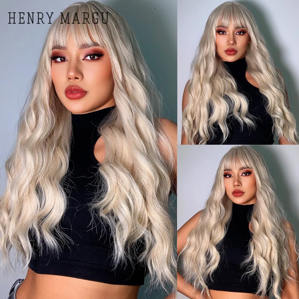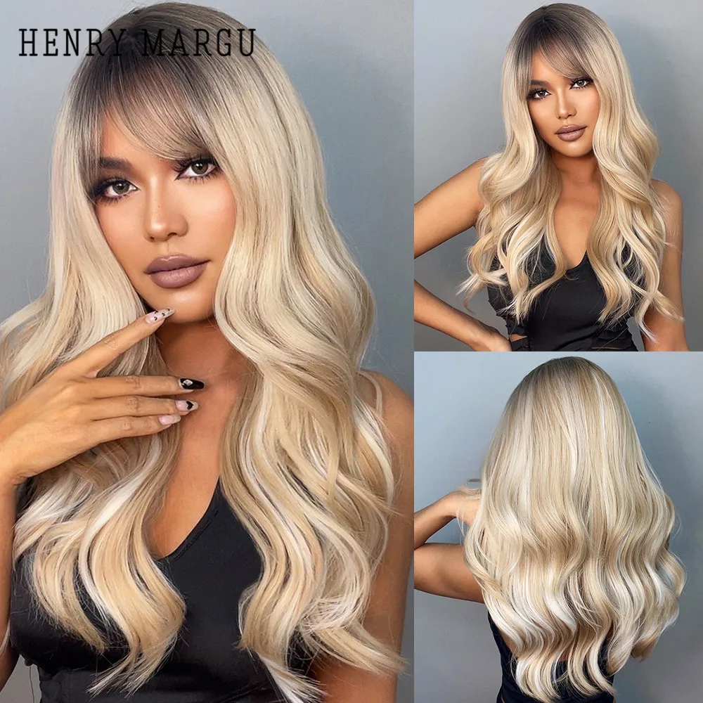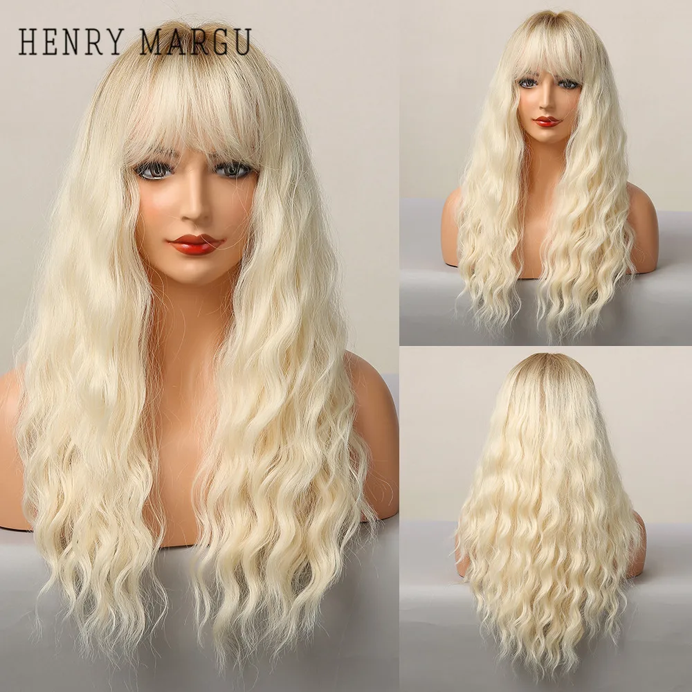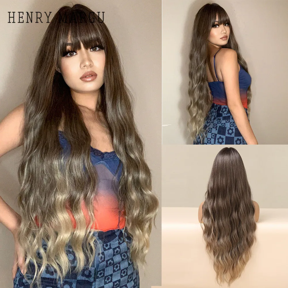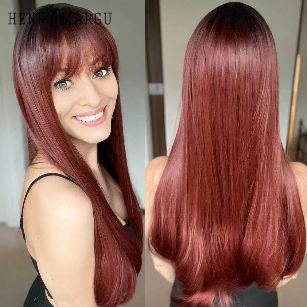 Длинные волнистые парики HENRY MARGU, красные, коричневые синтетические парики с челкой, кудрявые натуральные волосы для ежедневного косплея, вечерние термостойкие парики