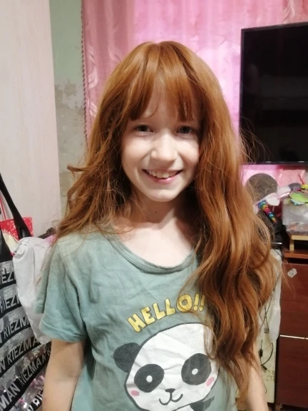 Парик пришёл очень быстро, за 12 дней. Цвет волос очень красивый – темно-рыжий, с приятным золотистым отливом. Чёлка довольно длинная, но отрезать её я не осмелилась. Волосы мягкие, в аккуратных локонах, смотрятся очень натурально, но после носки путаются довольно сильно. Покупала за монетки и купон, поэтому вышло даже дешевле, чем указанная цена. В комплекте была шапочка, но она больше похожа на копроновый носок, на голову никак не налазит. В целом, парик стоит своих денег, продавец хороший, заказывайте, не пожалеете.