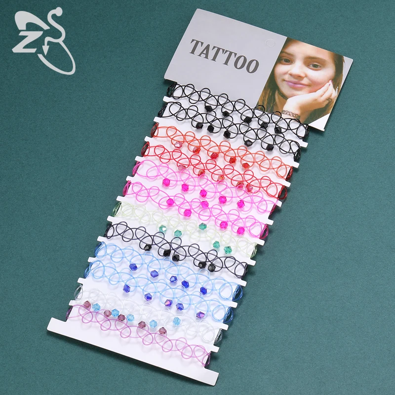 Женские винтажные Чокер-тату из эластичного материала браслеты ZS, готический эластичный браслет, Подарочная бижутерия