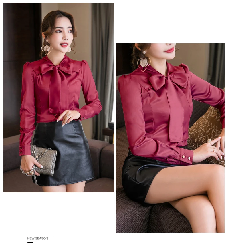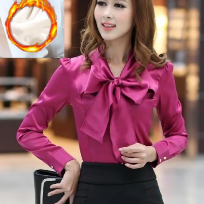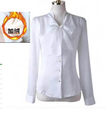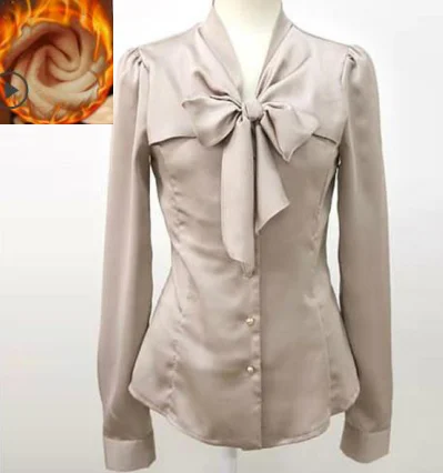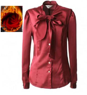 Зимняя одежда с длинным рукавом теплые флисовые женские атласные Рубашки Офис Леди галстук-бабочка эенская футболка одежда с утеплением, блузки