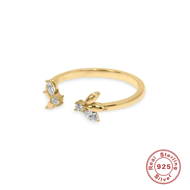 Женские кольца AIDE Mini Bee, обручальное кольцо из стерлингового серебра 925 пробы с открытым регулируемым пальцем, изысканное ювелирное изделие