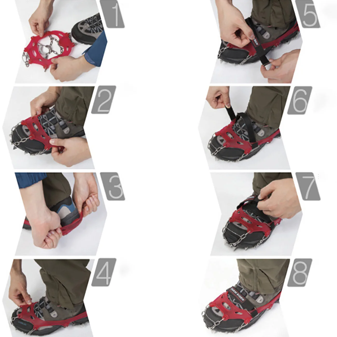 1 пара 10 стальных шипов для скалолазания и скалолазания, шипы для обуви, клещи для зимнего альпинизма, нескользящие 5, 8, 18 зубья, снаряжение для кемпинга Особенности: 1. Ультраэластичный светильник 2. Заземленные Стальные Шпильки 3. Доступны в размерах от 3 до 13 британских размеров 4. Занимает всего несколько секунд, чтобы надеть и снять 5. Растягивающаяся Тяговая Подножка для льда и снега 6. TPRМатериал Размер: S (Д * Ш = 175*105 мм): Великобритания (2-5) США (3-6) евро (33-38)JPN(21-24) M (Д * Ш = 195*125 мм): Великобритания (5-8) США (5-8) евро (36-41)JPN(23-26) L (Д * Ш = 210*125 мм): Великобритания (8-11) США (8-11) евро (39-46)JPN(26-29) XL:XL (Д * Ш = 240*145 мм): Великобритания (11-13) США (11-14) евро (45-48)JPN(29-32) • Преобразование: 1 дюйм = 2,54 см или 1 см = 0,393 дюймов