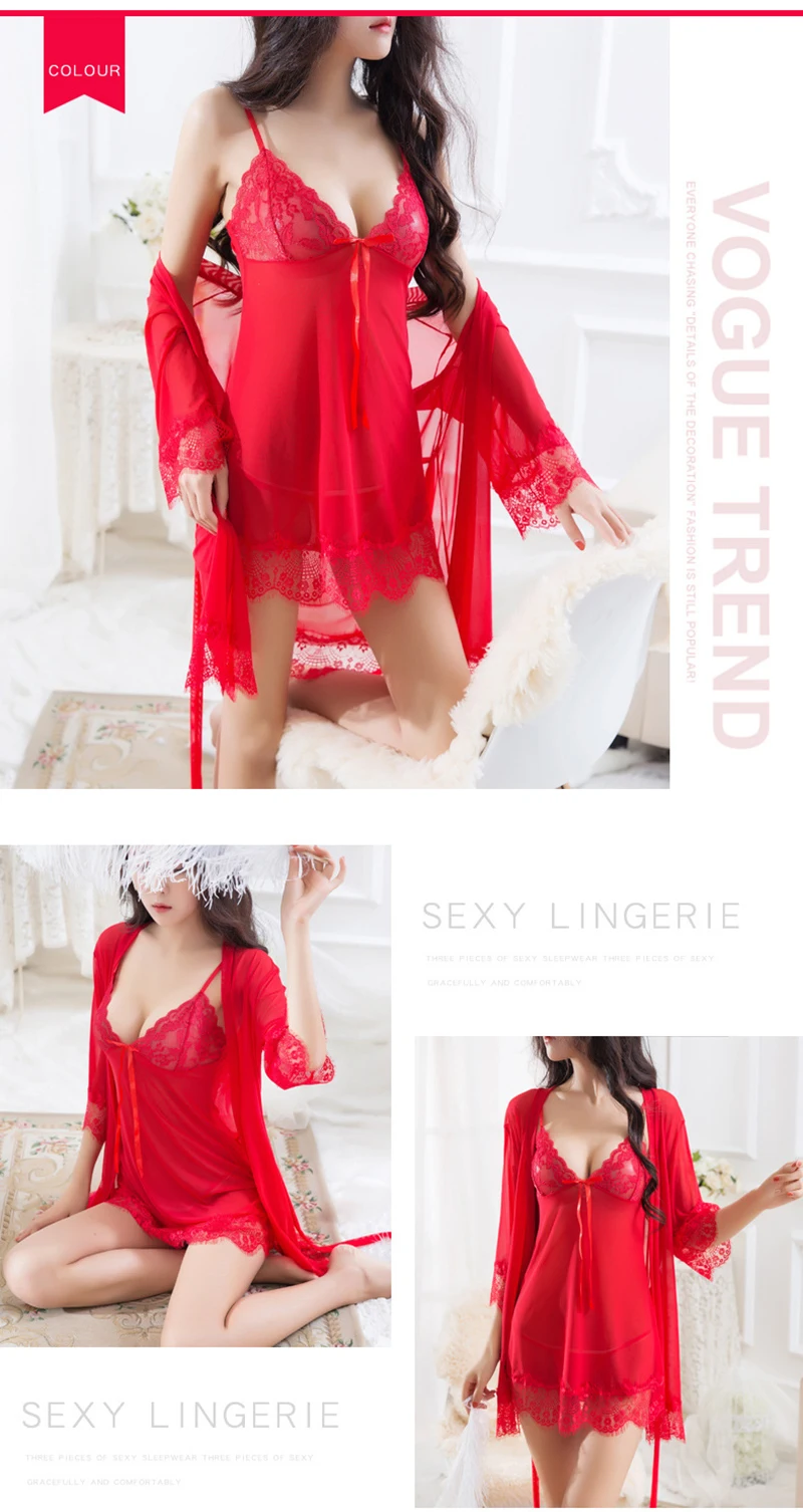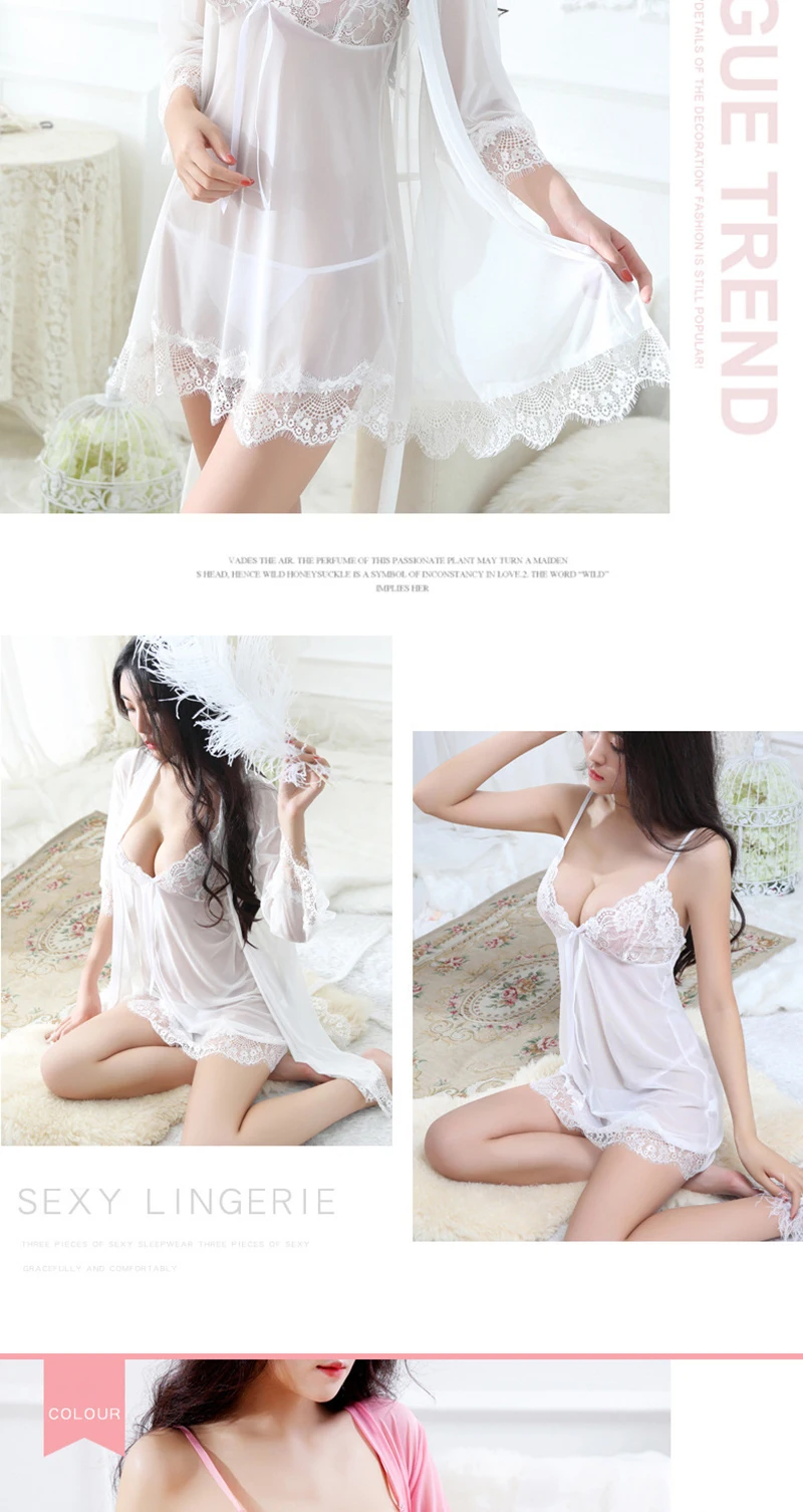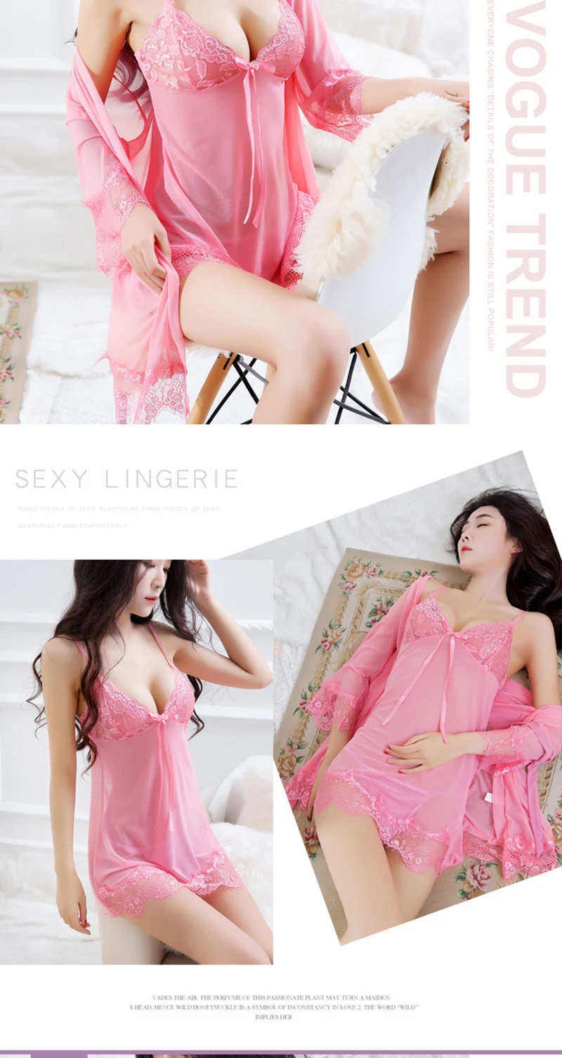 Женская кружевная ночная рубашка, прозрачная сексуальная пижама, комплект из 3 предметов, летняя ночная рубашка, ночная сорочка, домашняя одежда