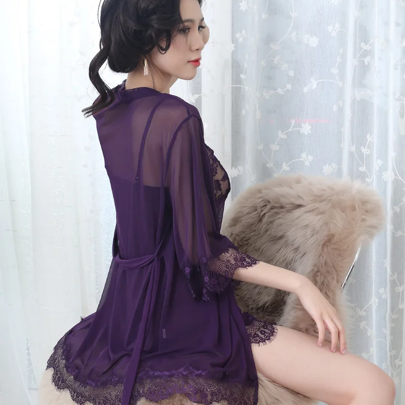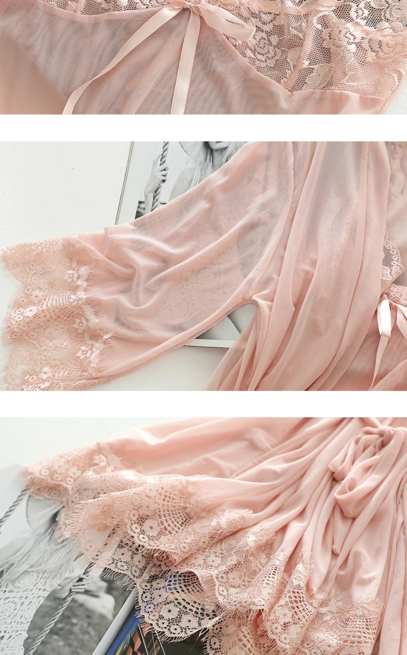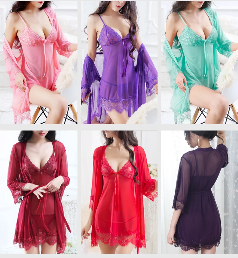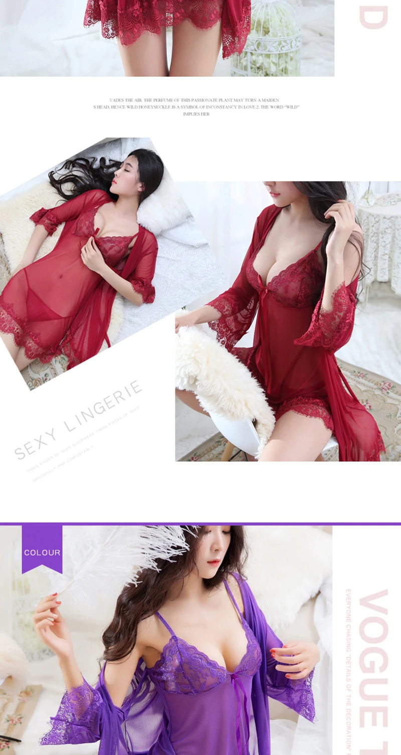 Женская кружевная ночная рубашка, прозрачная сексуальная пижама, комплект из 3 предметов, летняя ночная рубашка, ночная сорочка, домашняя одежда