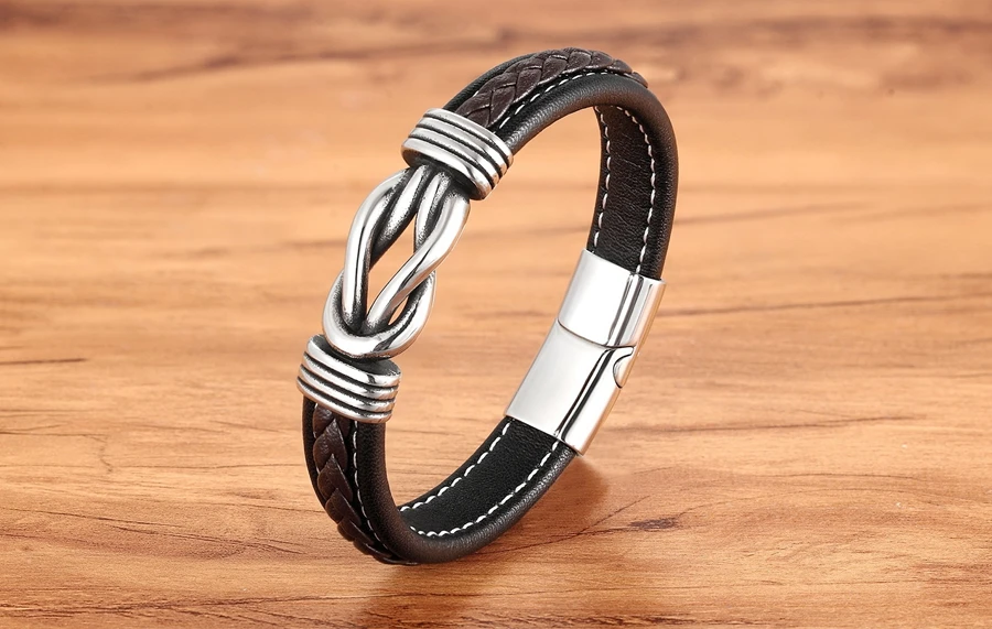 Геометрический мужской кожаный браслет из нержавеющей стали, ручная работа, магнитная застежка, черный, синий кожаный браслет, рождественское ювелирное изделие, подарок
