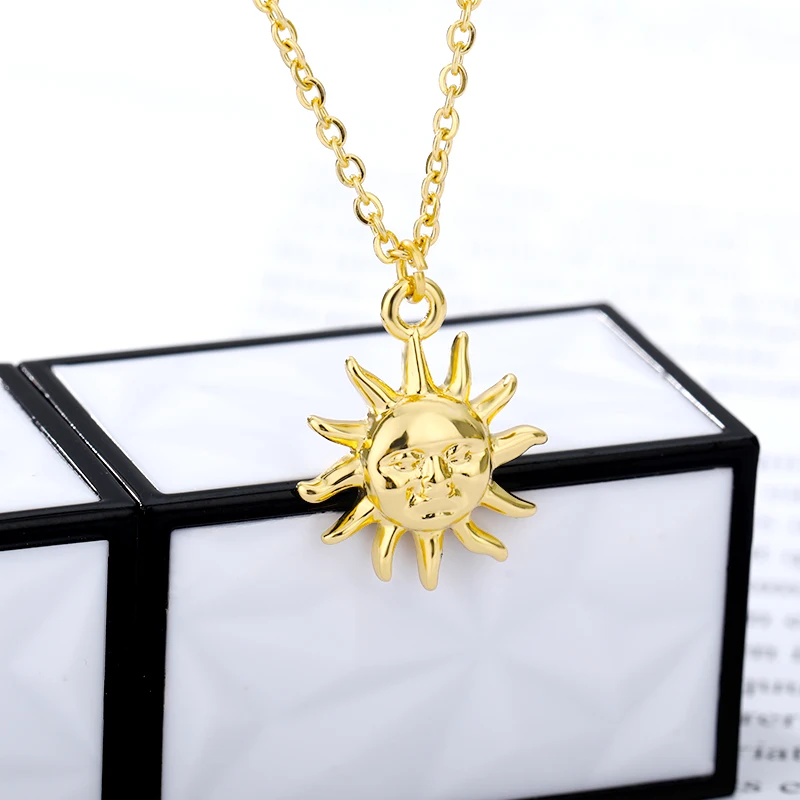 Винтажное ожерелье с подвеской в виде смайлика и солнца для женщин, цепочка из нержавеющей стали под золото, чокер в стиле бохо, Ювелирное Украшение, подарочное колье