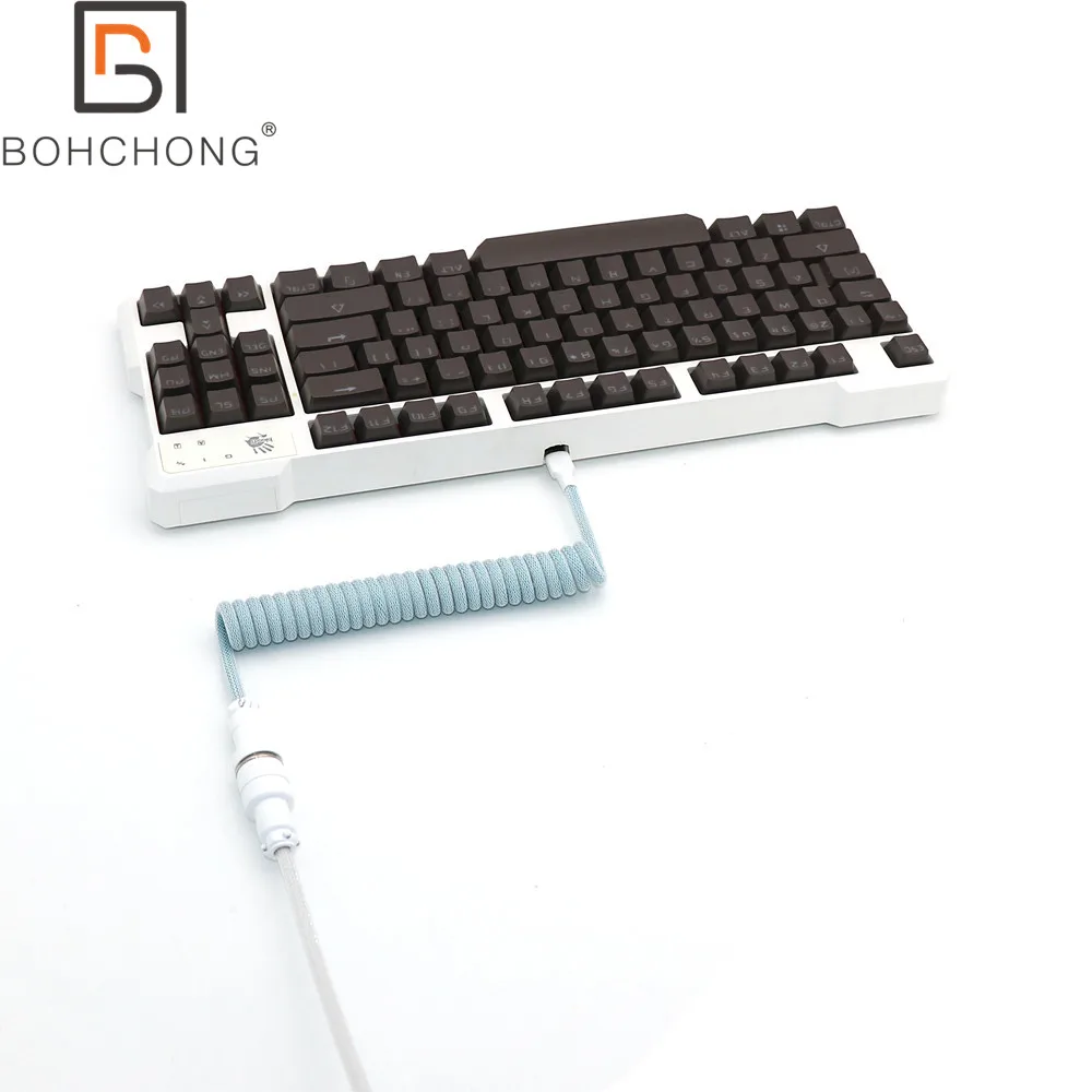 Спиральный мини-микро-кабель Z-образной формы с двойным рукавом, 7 ядер, из Паракорда и ПЭТ, Тип C, для клавиатуры, USB-кабель с авиатором GX12