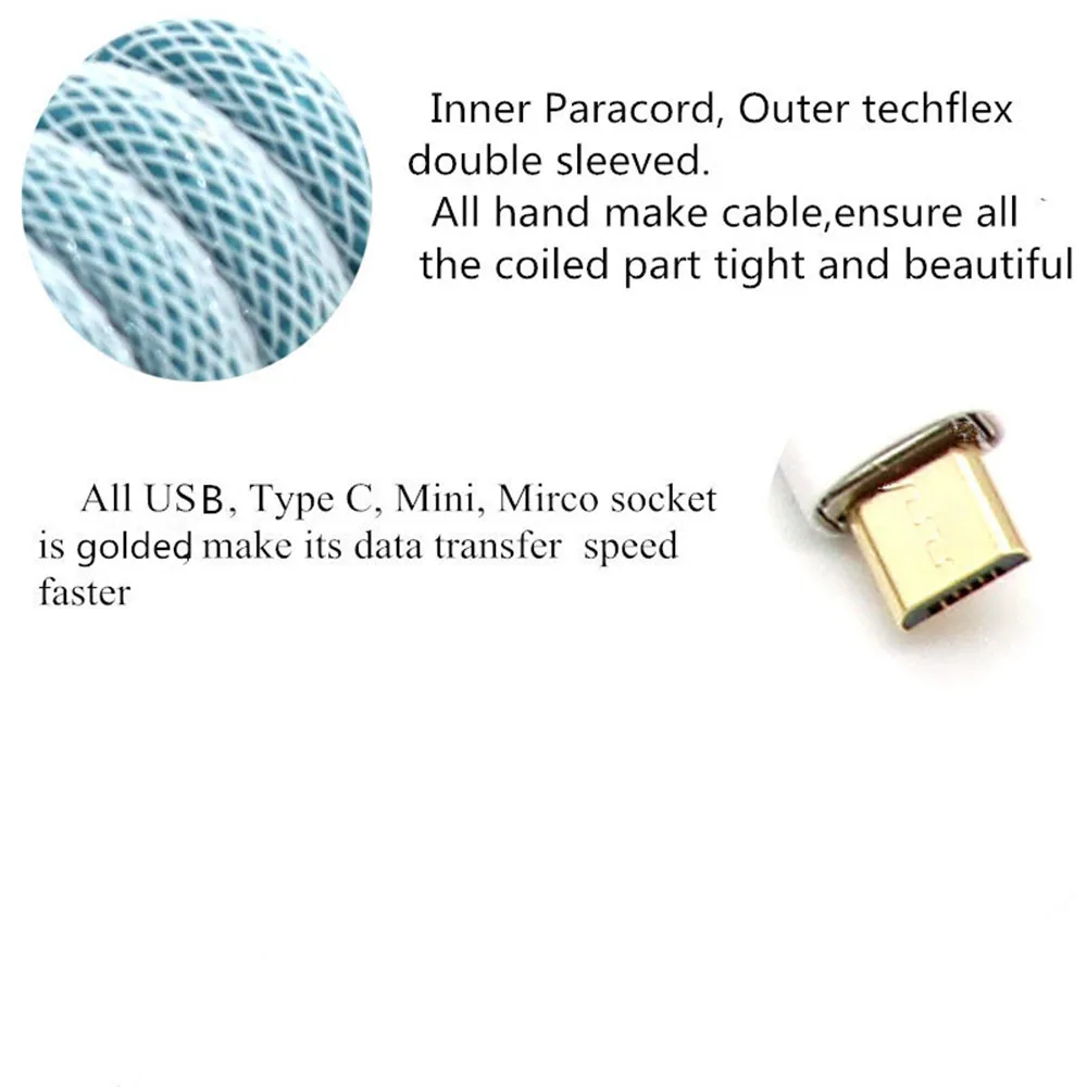 Z форма с двойными рукавами 7 ядер Paracord и PET спиральный тип C мини микро кабель для клавиатуры USB Спиральный кабель с GX12 Авиатор