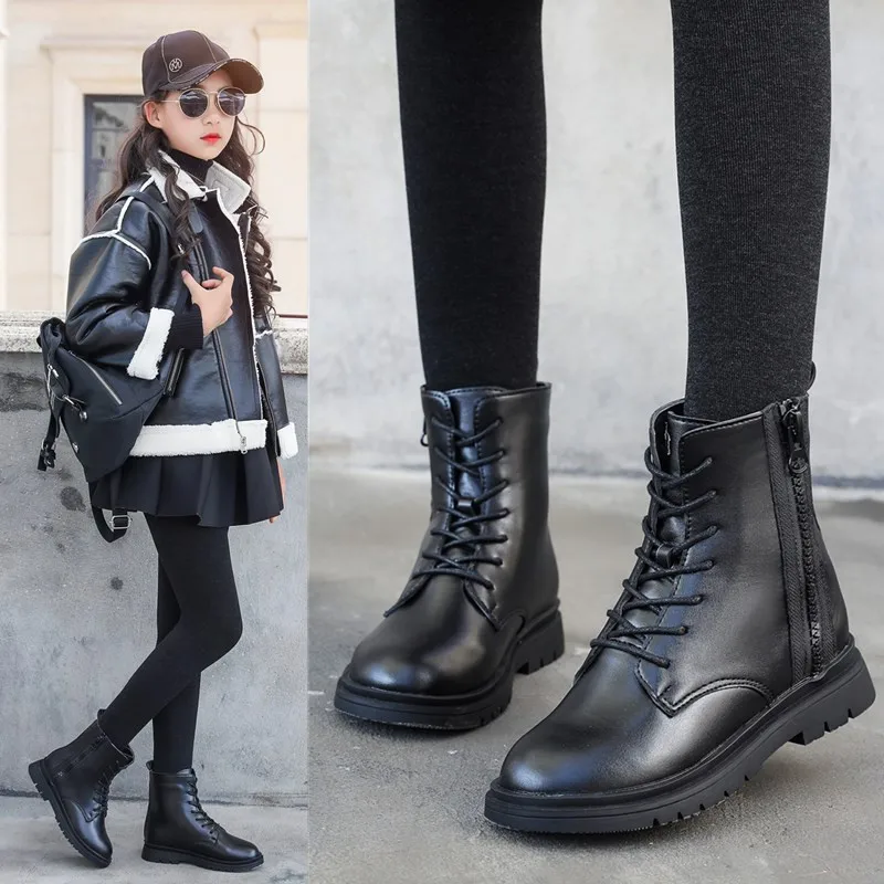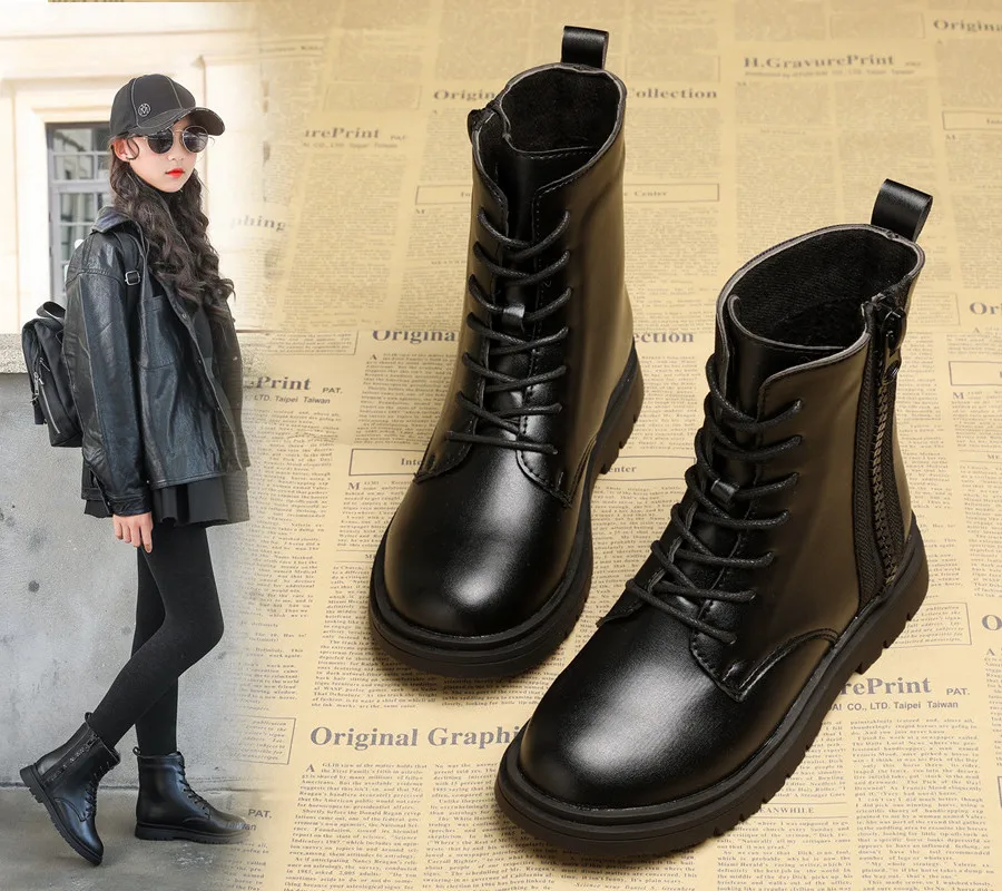 Модные черные Детские Ботинки Martin; Обувь для девочек; Нескользящая теплая детская обувь; Сезон осень-зима; Размеры 3, 4, 5, 6, 7, 8, 9, 10, 11, 12, 13 лет