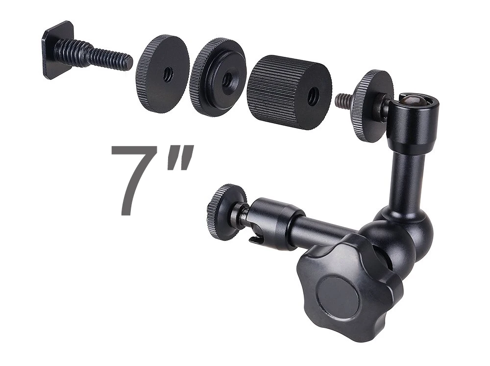 Прочный и долговечный-это хорошо обработанный металл, который сделан из твердого анодированного алюминиевого сплава, он не будет легко страдать от коррозии или поломки. MAGIC ARM-одна сторона имеет винт 1/4 ", соединяющийся с монитором светодиодный светильник кой или другими аксессуарами. Еще одна сторона-это квадратное крепление типа горячий башмак, которое можно легко установить на камеру DSLR. И это крепление Горячий башмак является съемным, чтобы стать еще одним винтом 1/4 ", поэтому оба конца-это винт 1/4", который вы можете подключить к разному оборудованию. Легко управлять-Эта волшебная рука с фиксирующими ручками управления для снятия или увеличения напряжения, которое может придать всем позициям движения. Этот шарнирный волшебный кронштейн с двумя гладкими шариковыми головками на 360 ° упрощает установку, размещение и регулировку любого освещения на камере и других аксессуаров. Широкое применение-Magic Arm шарнирный фрикционный кронштейн с Крепление для горячего башмака идеально подходит для установки цифровой зеркальной камеры, ЖК-монитора, монитора DV светодиодный светодиодных ламп, вспышек, микрофонов, смартфонов и многого другого. SUPER CLAMP-зажим magic arm имеет женский 1/4-20 и 3/8-16, как стандартные размеры фитингов в фотоиндустрии для головок, так и штативов используется для разнообразных насадок. Как камеры, 15 мм стержни, светодиодные фонари, зонты, крючки, полки, пластинчатое стекло, перекладины и т. Д. Простой в управлении-этот точный и прочный супер-зажим с блокировкой кнопок управления для снятия или увеличения напряжения, который может придать всем позициям движения, отличный патрон для легкого и быстрого захвата предмета.Спецификация: Цвет: черный Материал: металл Диапазон зажима: прибл. 55 мм/2,16 дюйма Длина дужки 7 ": ок. 185 мм/7,28 дюйма Длина рукоятки 11 ": ок. 285 мм/11,22 дюйма Примечание: Камера и другие аксессуары в комплект не входят; Выберите правильный вариант перед заказом. Посылка входит: