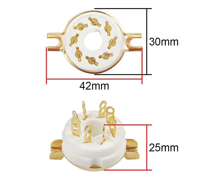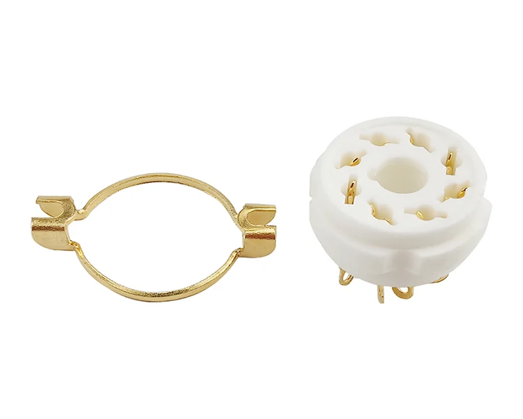Позолоченный 8 контактный электронный трубный клапан керамический разъем. С фиксированным железным обручем. Высокочастотный фарфоровый трубчатый клапан усилителя гнезда, близкий контакт, подходит для сварки строительных лесов. Для: 8 контактный вакуумный трубный клапан. Посылка: 2 шт.