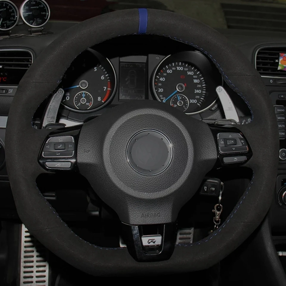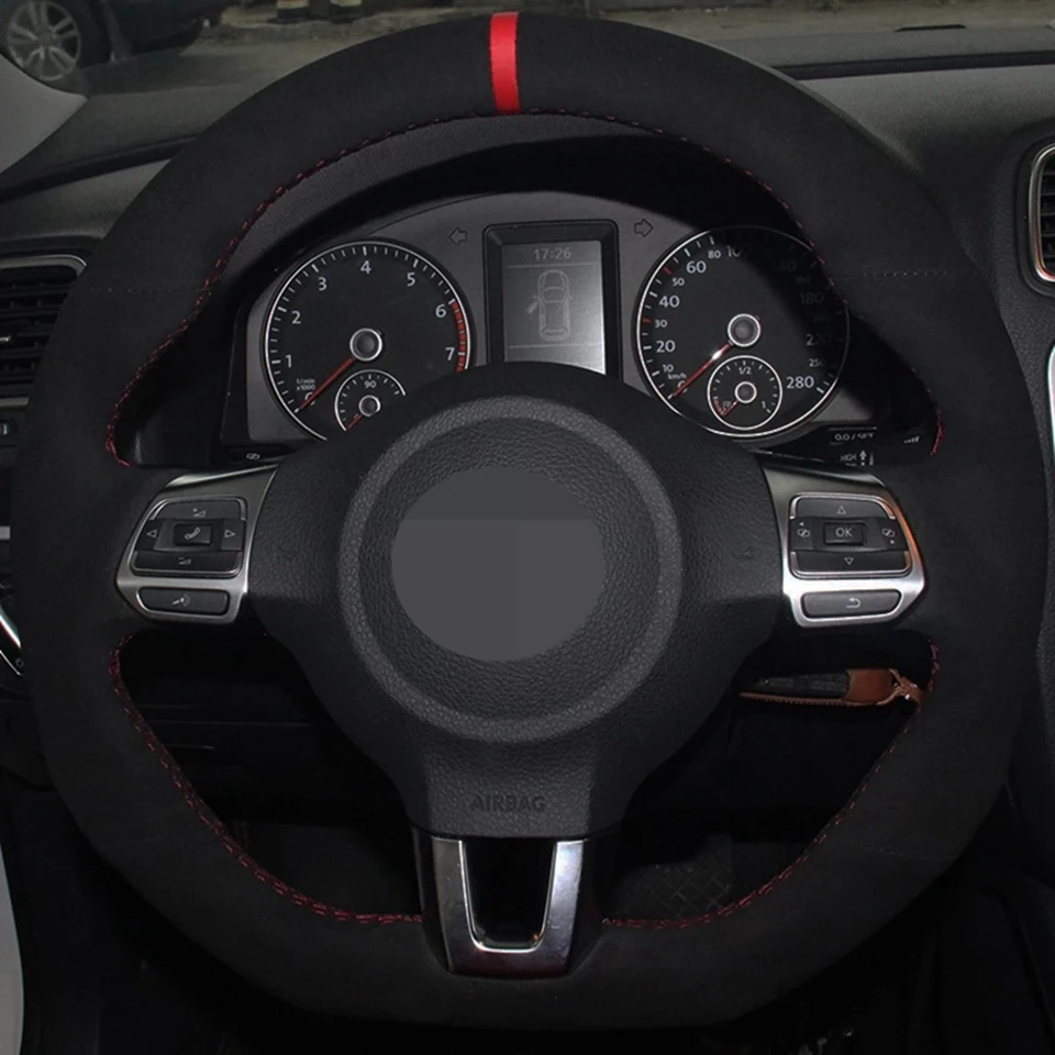 Чехол рулевого колеса автомобиля черная замша ручной работы для Volkswagen Golf 6 GTI MK6 VW Polo GTI Scirocco R Passat CC R-Line 2010