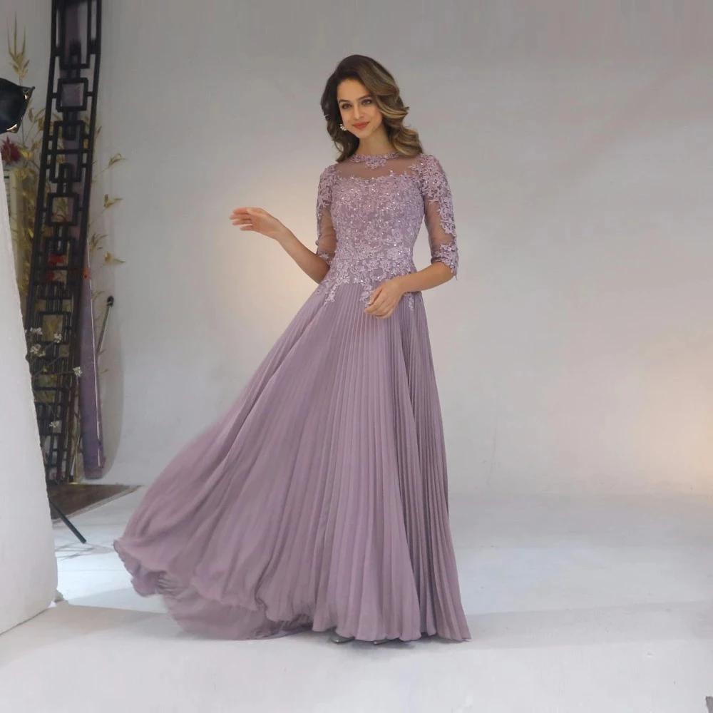 2020 шифоновое Плиссированное кружевное платье трапециевидной формы с рукавами 12 платье для мамы невесты длинное платье De Festa Longo