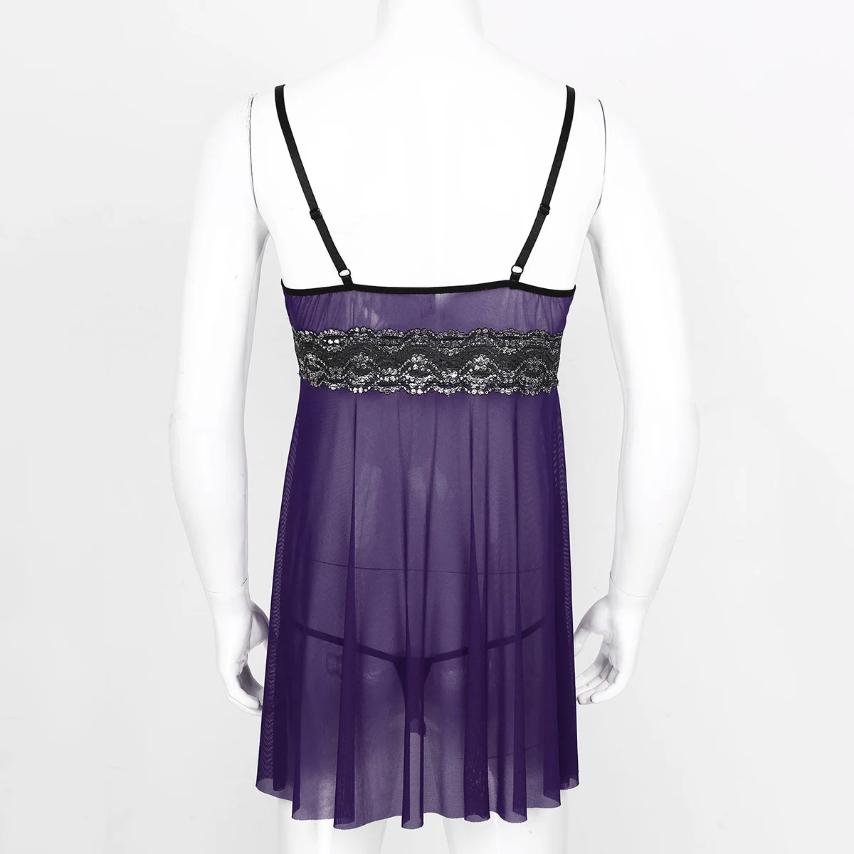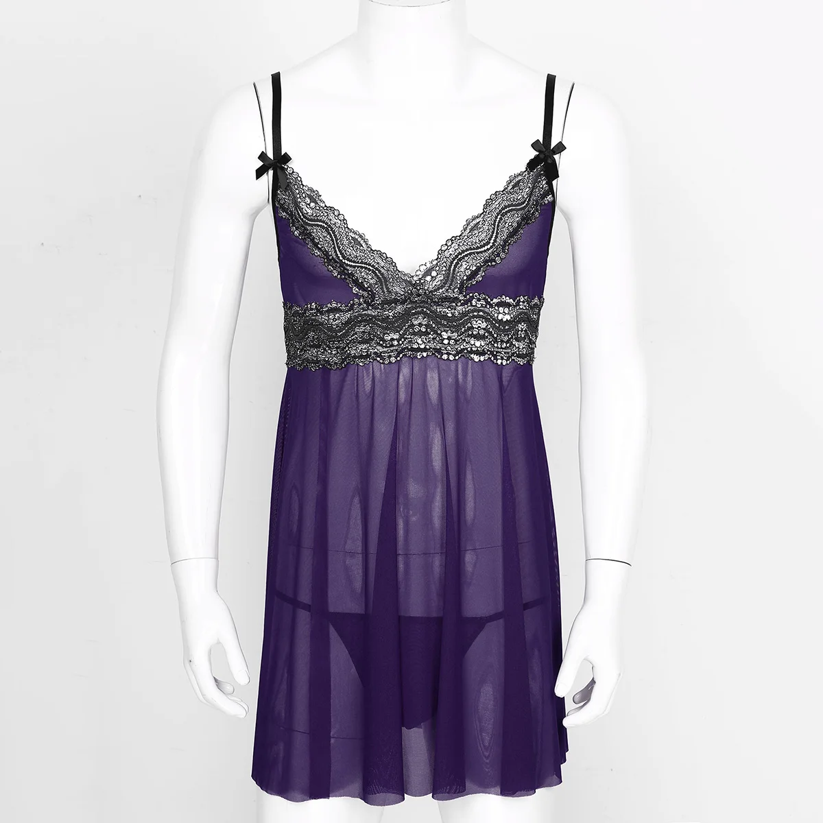Особенности: Мужская сетчатая сорочка, пижама с застежкой. Регулируемые бретельки-спагетти, Глубокий v-образный вырез, Боковой разрез, с трусами-стрингами. Изготовлены из сетки, легкие, удобные, гибкие и дышащие для ношения, дарят ощущение мягкости и чувства. Идеально подходит для сна, романтической ночи, свадебной ночи, лучший подарок на День святого Валентина для ваших возлюбленных. Пожалуйста, внимательно проверьте размер перед размещением заказа, ручная стирка в холодной воде.