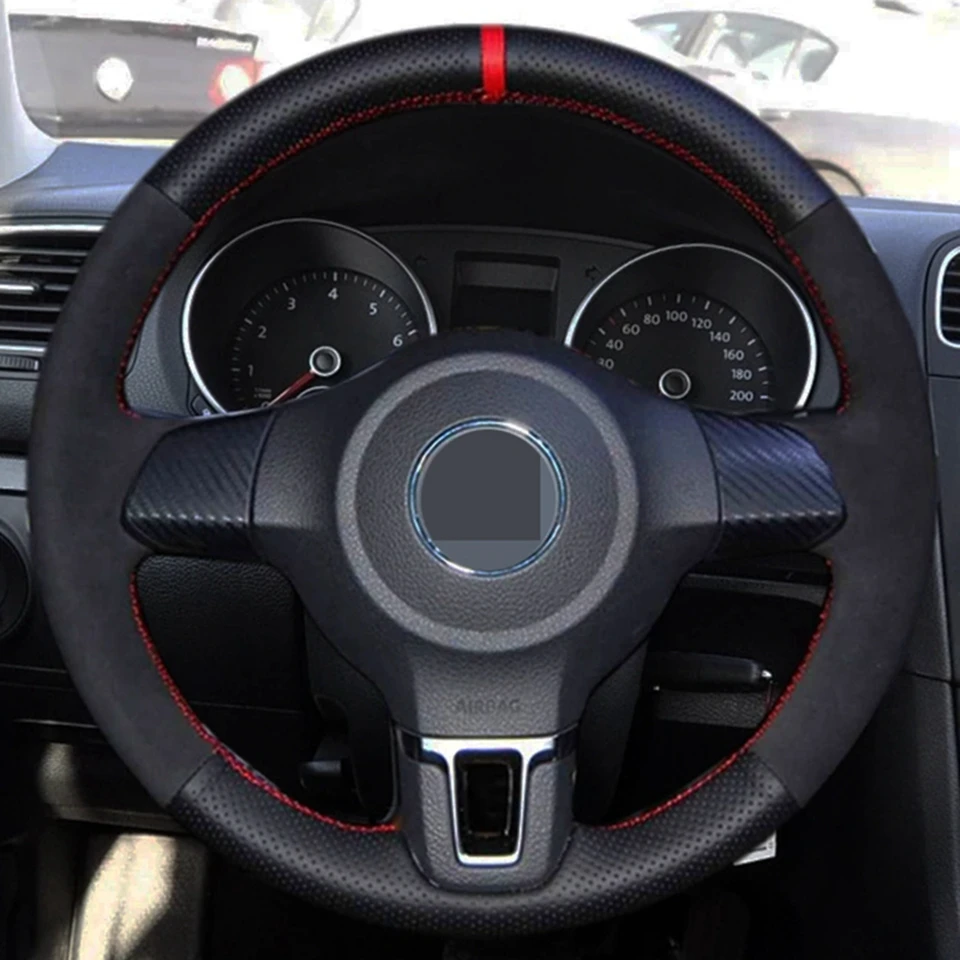 Чехол рулевого колеса автомобиля DIY ручной работы мягкая черная замша для Volkswagen Golf 6 Mk6 VW Polo Sagitar Бора Сантана Jetta MK5