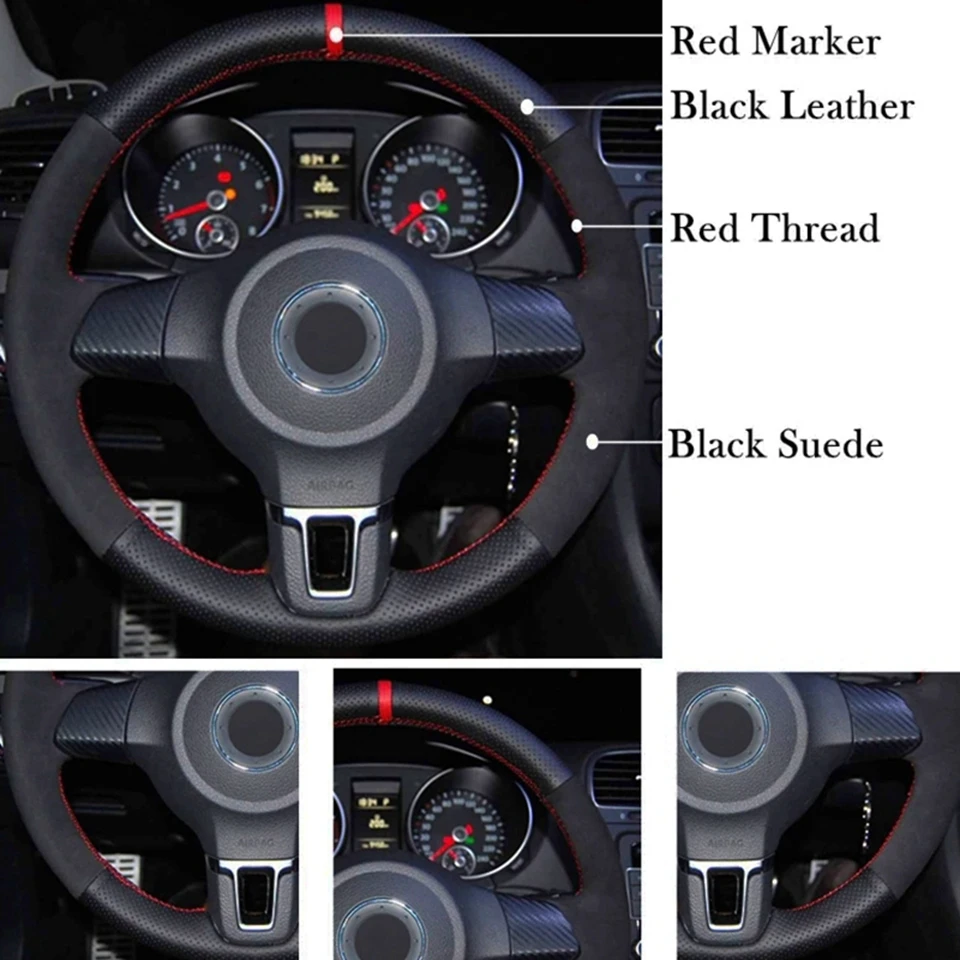 Сшитый вручную черный замшевый красный маркер Чехлы рулевого колеса...