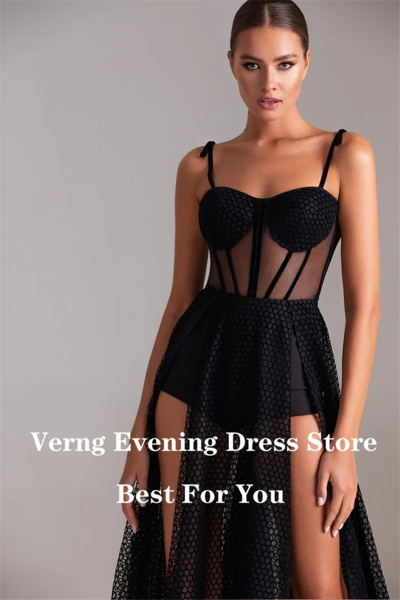 Женское вечернее платье-трапеция Verngo, черное ТРАПЕЦИЕВИДНОЕ ПЛАТЬЕ на бретелях-спагетти, с высоким разрезом по бокам, пикантное вечернее платье с короткими штанами, 2021