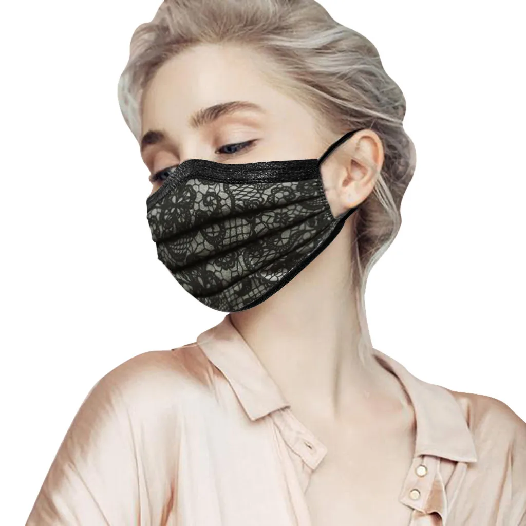 50 шт взрослые модные кружевные одноразовые защитные трехслойные дышащие маски для лица