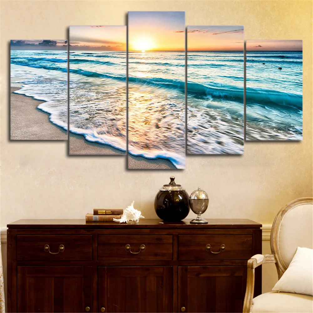 Настенный плакат, 5 шт., на холсте, цветной морской пейзаж, настраиваемый Современный домашний декор, украшения для гостиной и спальни