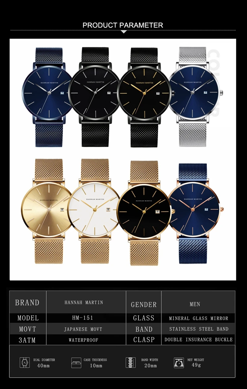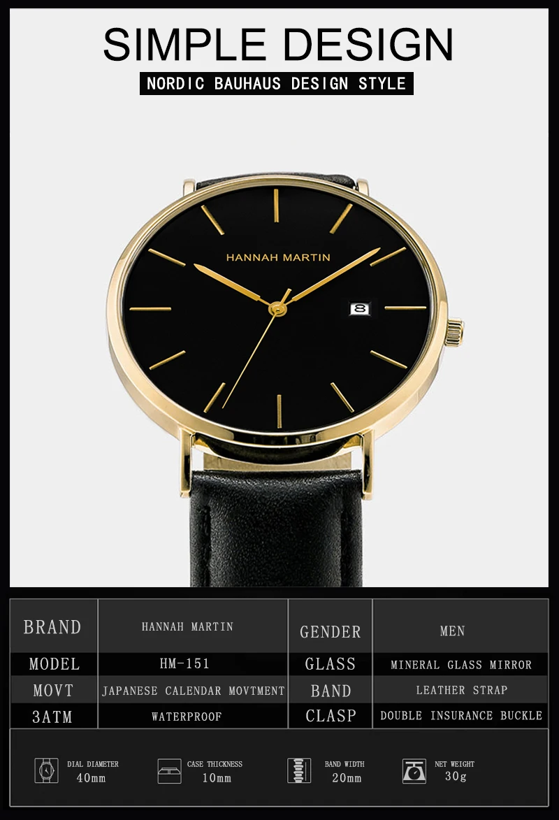 Часы Hannah Martin мужские ультратонкие, модные роскошные спортивны...