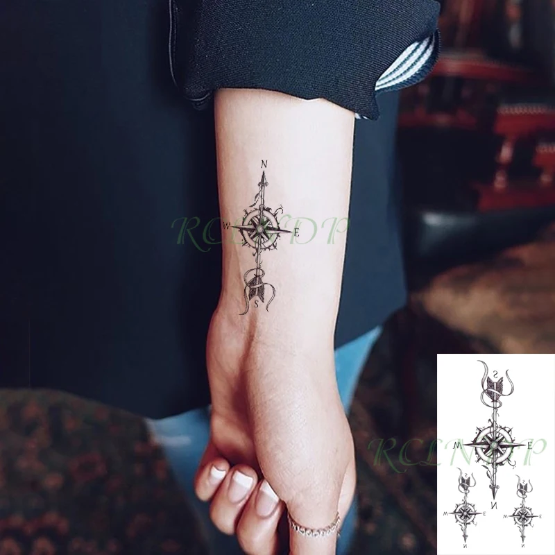 Водонепроницаемый временная татуировка Стикеры "перья" якорь и компас Ele Для мужчин футболка с имитацией татуировки золотого и серебряного флэш-тату небольшой для боди-арта для малыша Для мужчин Для женщин Для мужчин