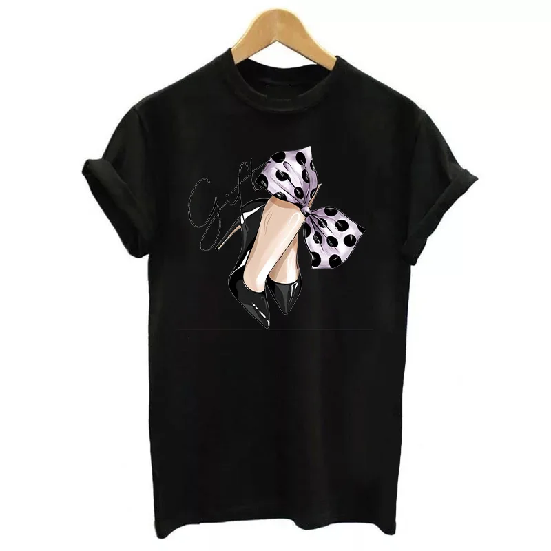Милая Черная Термотрансферная наклейка для девочек, футболка с прин...