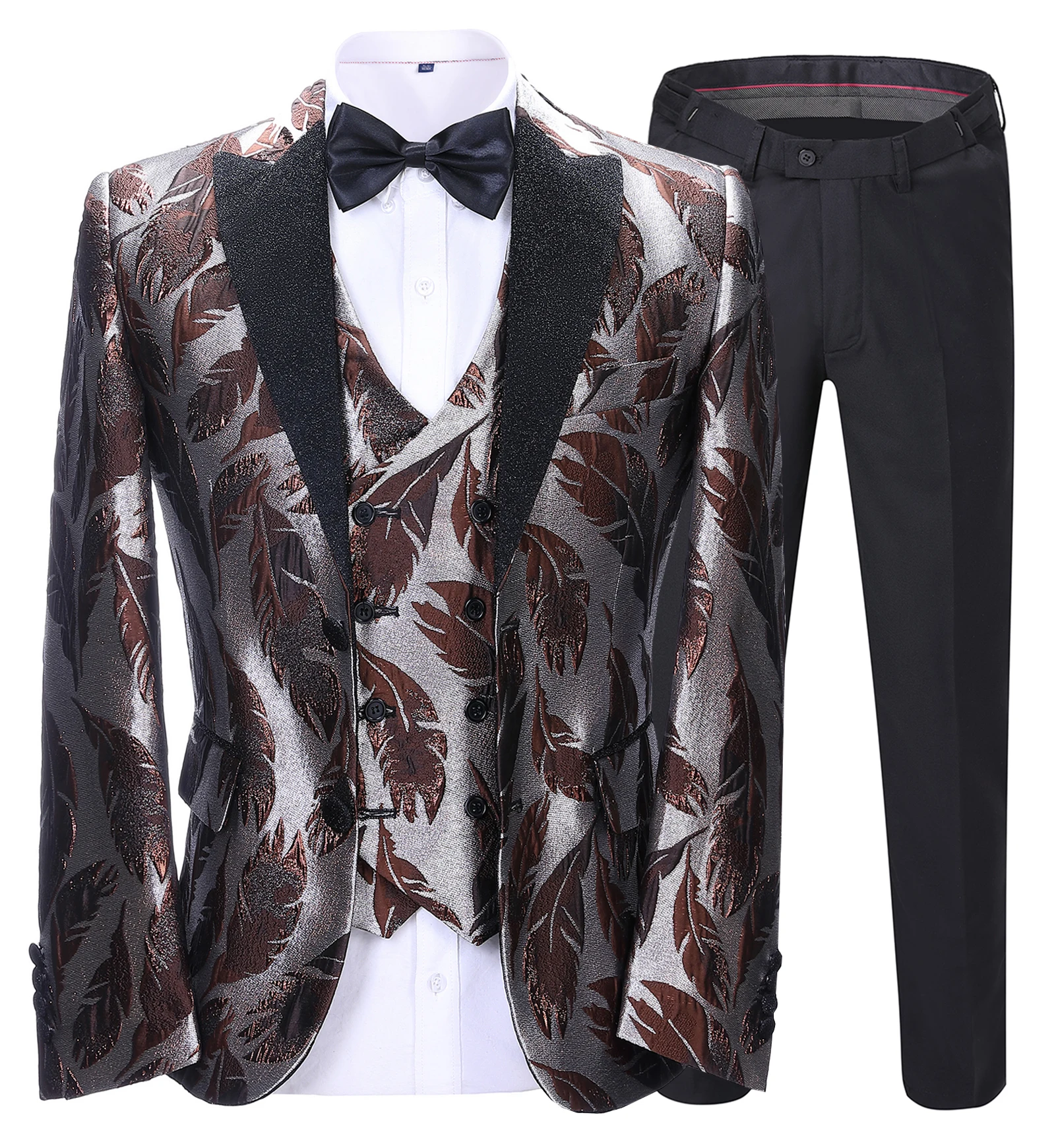 Мужские костюмы в новом стиле 2021, 3 предмета, пиджак с отложным воротником и принтом, облегающее вечернее платье, свадебный смокинг для жениха (пиджак + брюки + жилет)