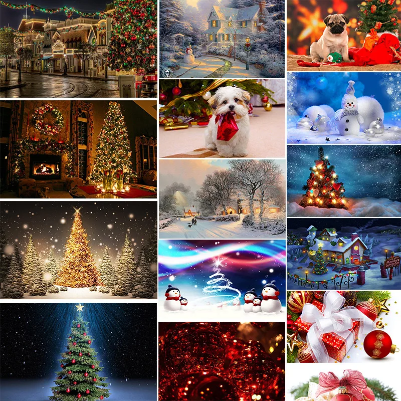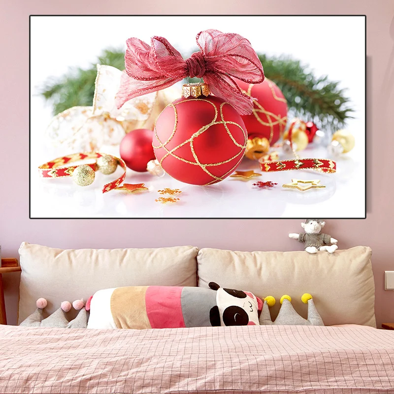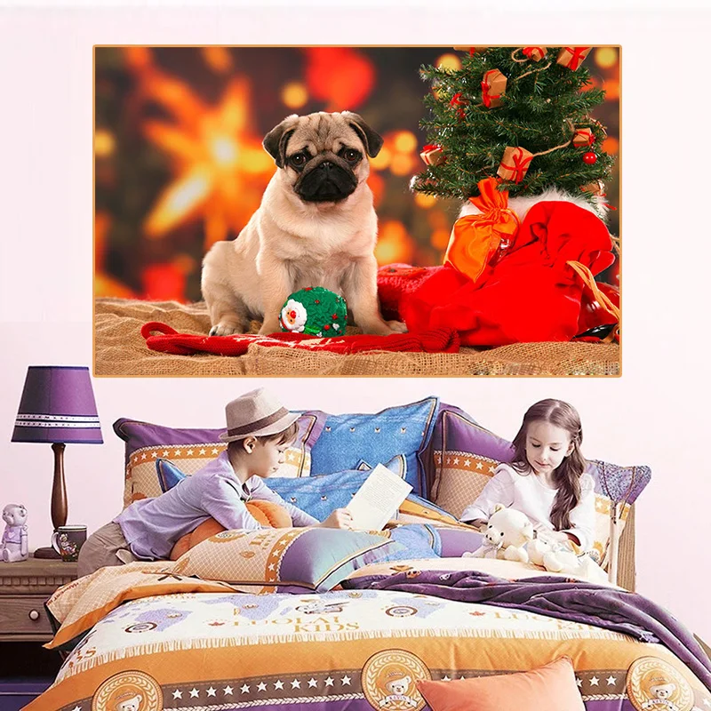 Рождественская Картина на холсте с Санта Клаусом, елкой, мозаика, рождественский подарок, снеговик, искусство на стену, картина для детской комнаты, домашний декор