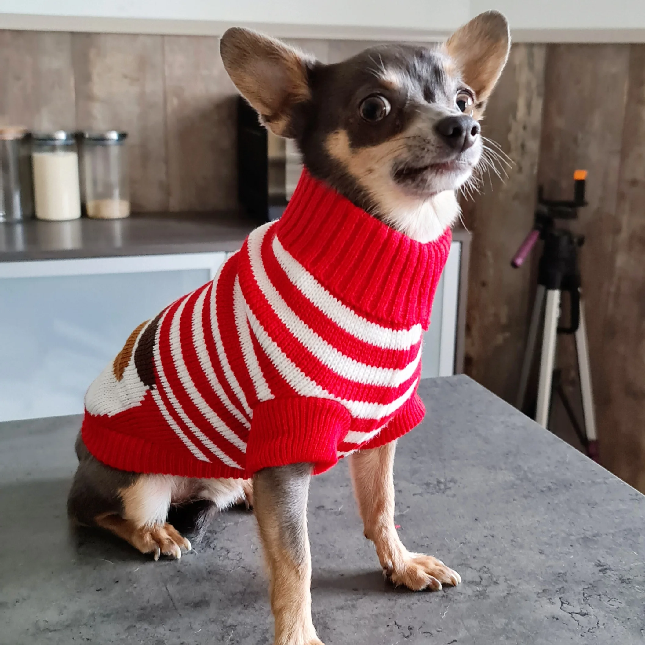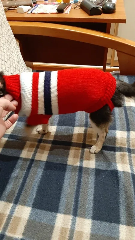 Отличный джемпер, я заказал большой для миниатюрного йоркширского терьера, поэтому помните, что они очень маленькие