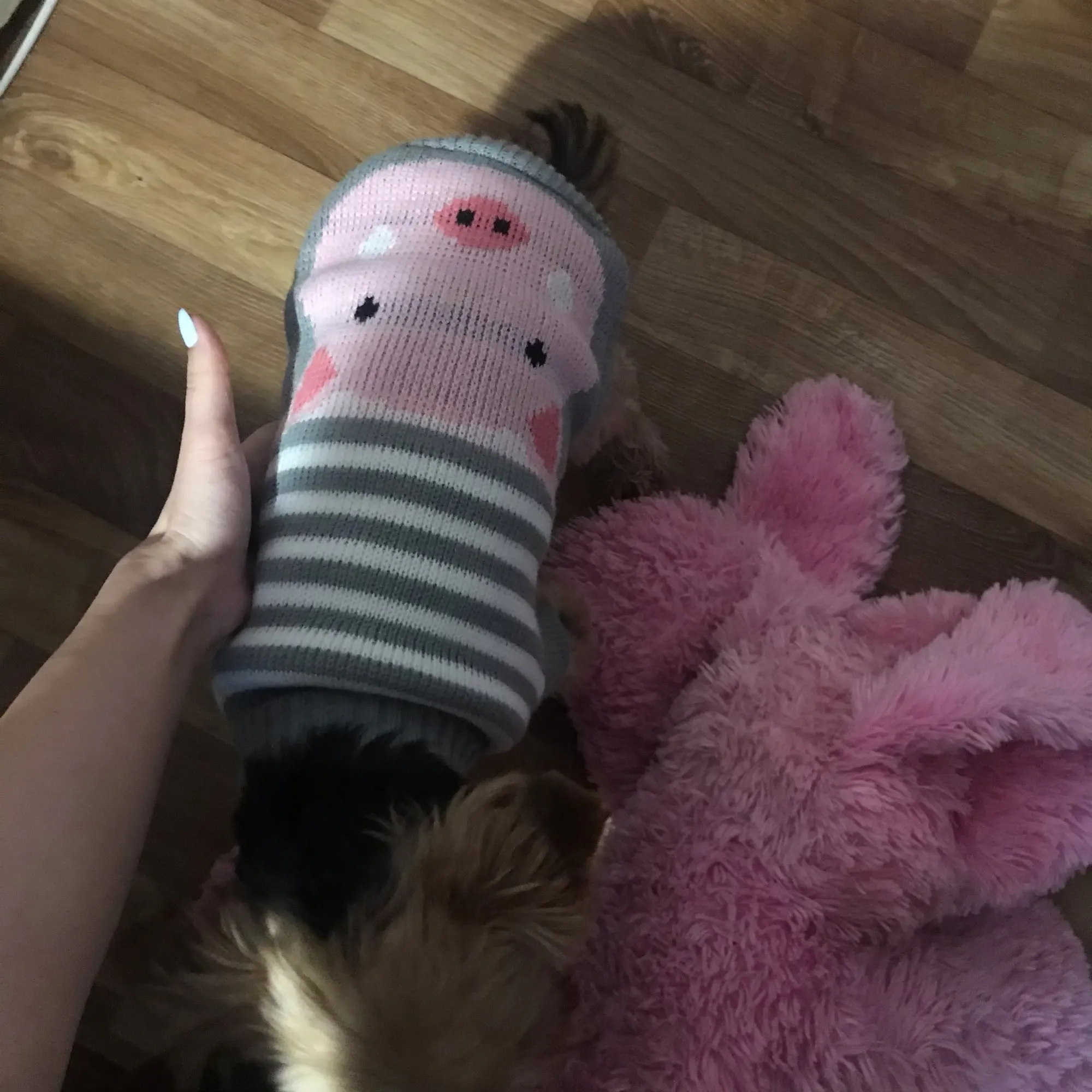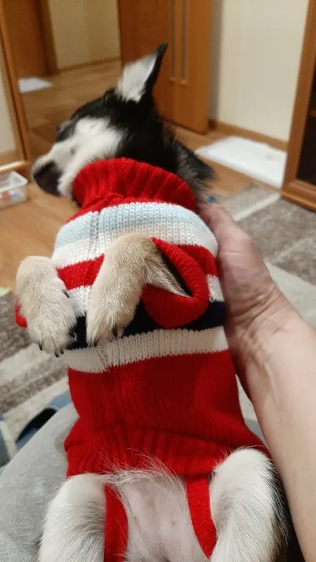 Мы в восторге от этой посылки! Очень качественный и красивый свитерок! Не к чему привязаться! На худенького пинчера, зашёл xl, как влитой! Собаке тоже было в нём очень комфортно! Огромное спасибо продавцу!