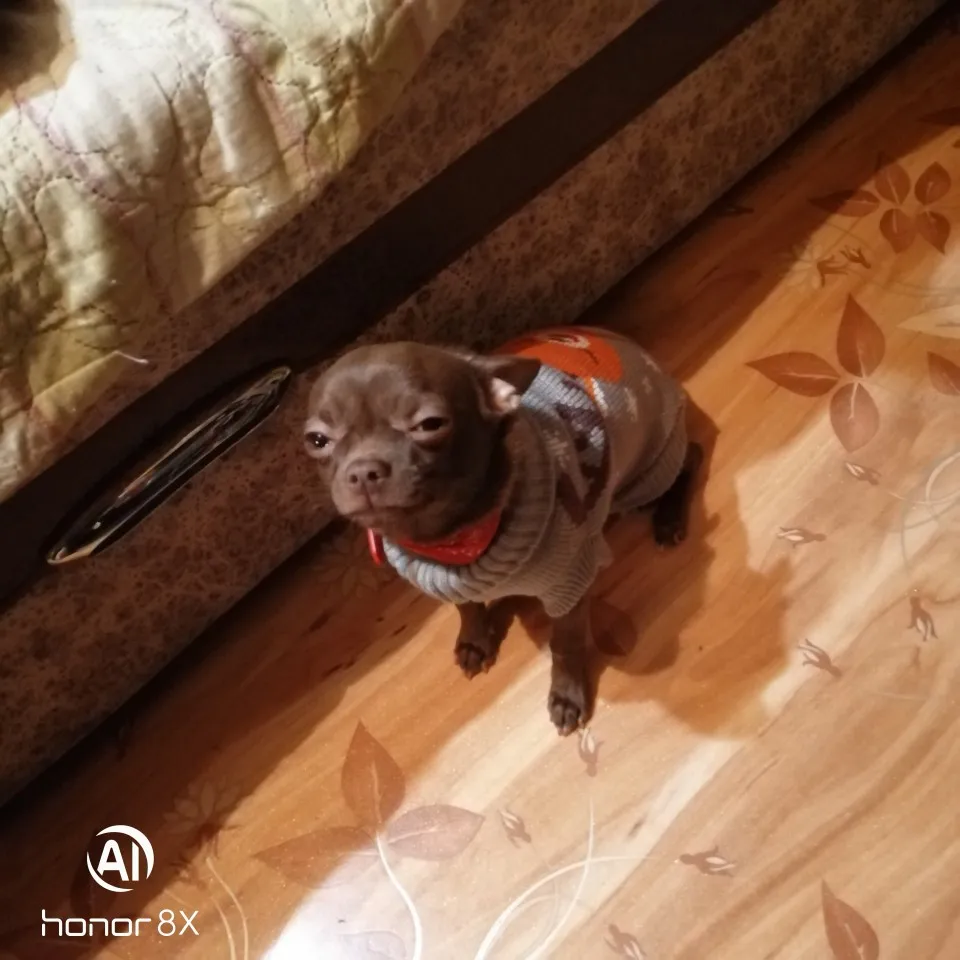 Пришло до Питера за три недели, но с размером не угадала, подарим.... Свитер отличный, качественно сшит.... Рекомендую, на чихуа 3 кг нужен размер М.....