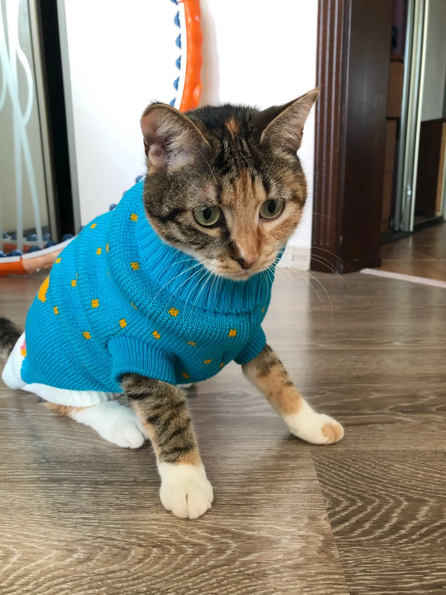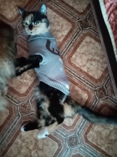 Кардиган супер. Сделано хорошо. Женский Кот около 6 месяцев. Быстрая доставка.