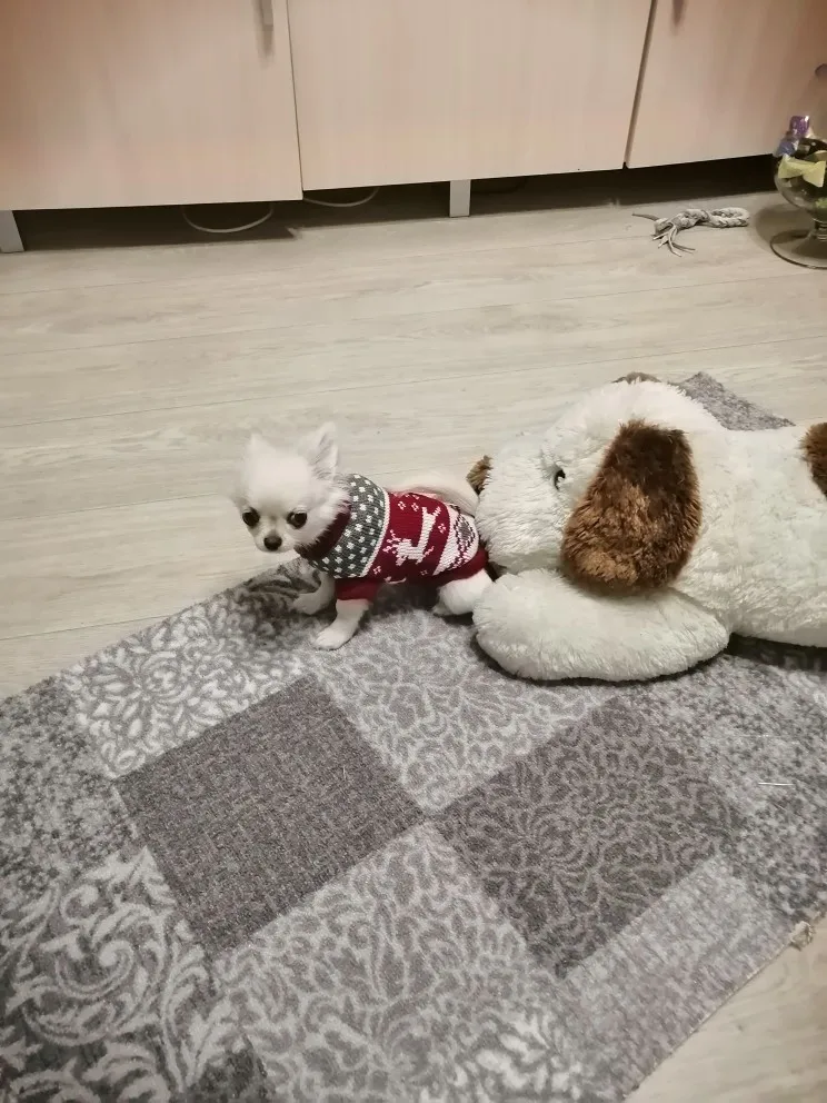 Быстрая доставка. Большое спасибо продавцу! Моя маленькая собака весит 2,2 кг. Я получил размер M. Идеальный маленький свитер. Я люблю. Когда я мою его и он промокает, я потяну его по длине, иначе он немного усадится. Приятный для тела. Также сохраняет тепло. Я купил много маленьких свитеров на ali, это модель, которая подходит мне лучше всего, а также моей маленькой любви. Потому что необходимо подчеркнуть, что мой мужчина и что форма вокруг живота ясна. Это позволяет моей собаке не мочиться на пальто! Я надеюсь, что помогли вам в вашем выборе. Я рекомендую товар и продавцу.
