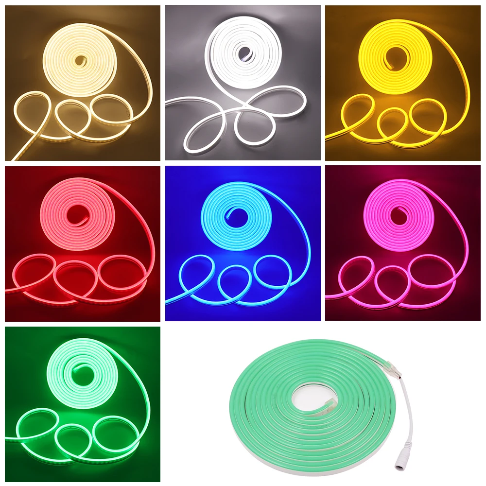 Неоновая водонепроницаемая светодиодная лента 12 В SMD 2835 120LED sm, красная, синяя, зеленая, белая, фотолампа с теплым светом 0,5 м, 1 м, 2 м, 5 м