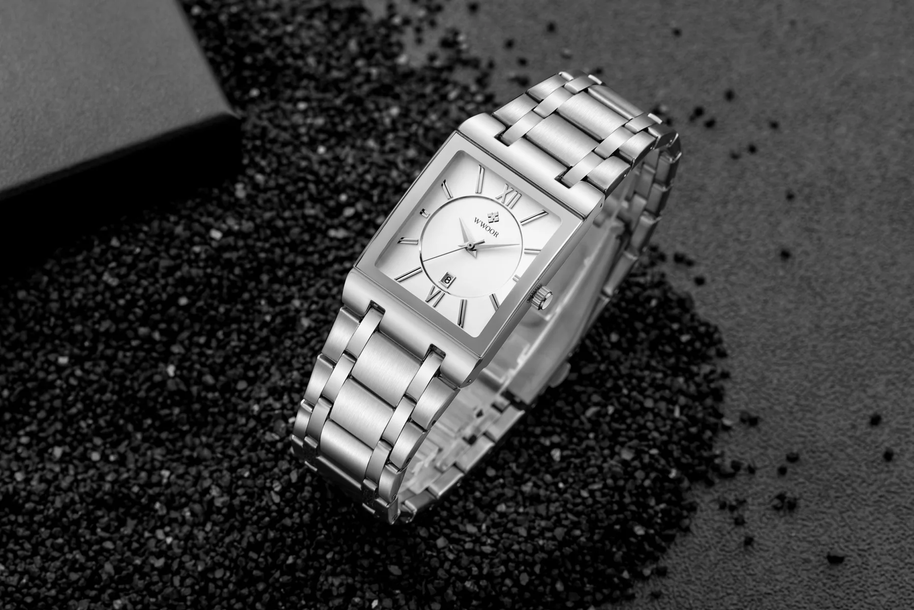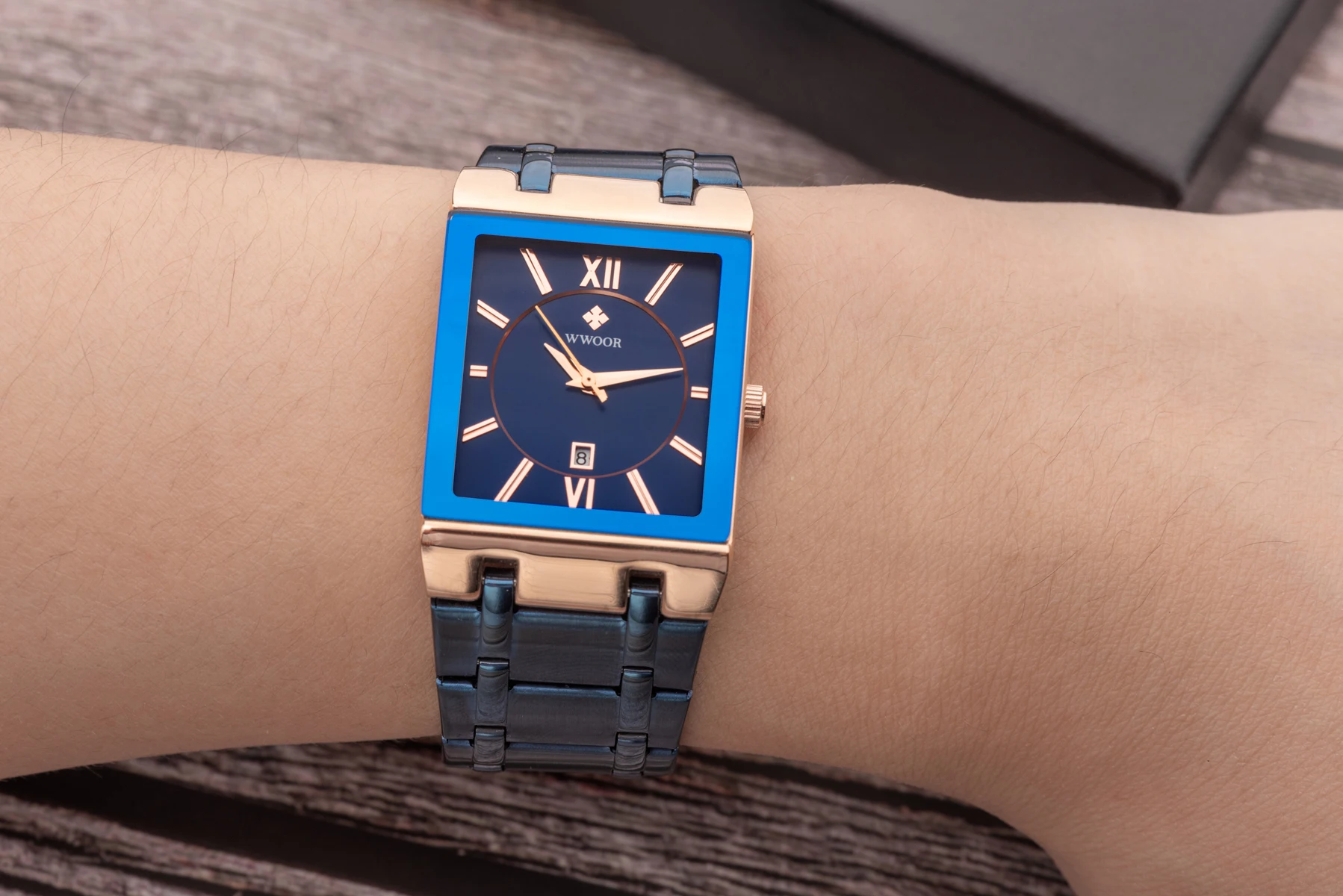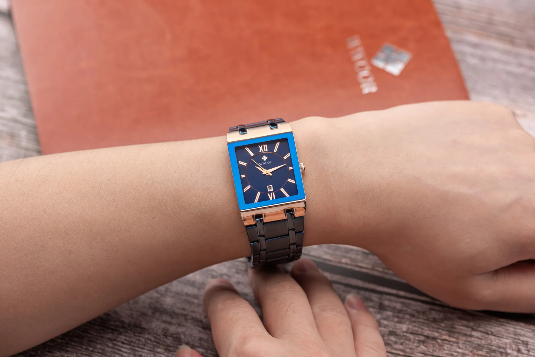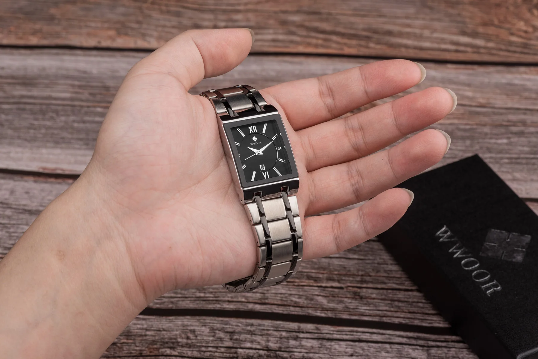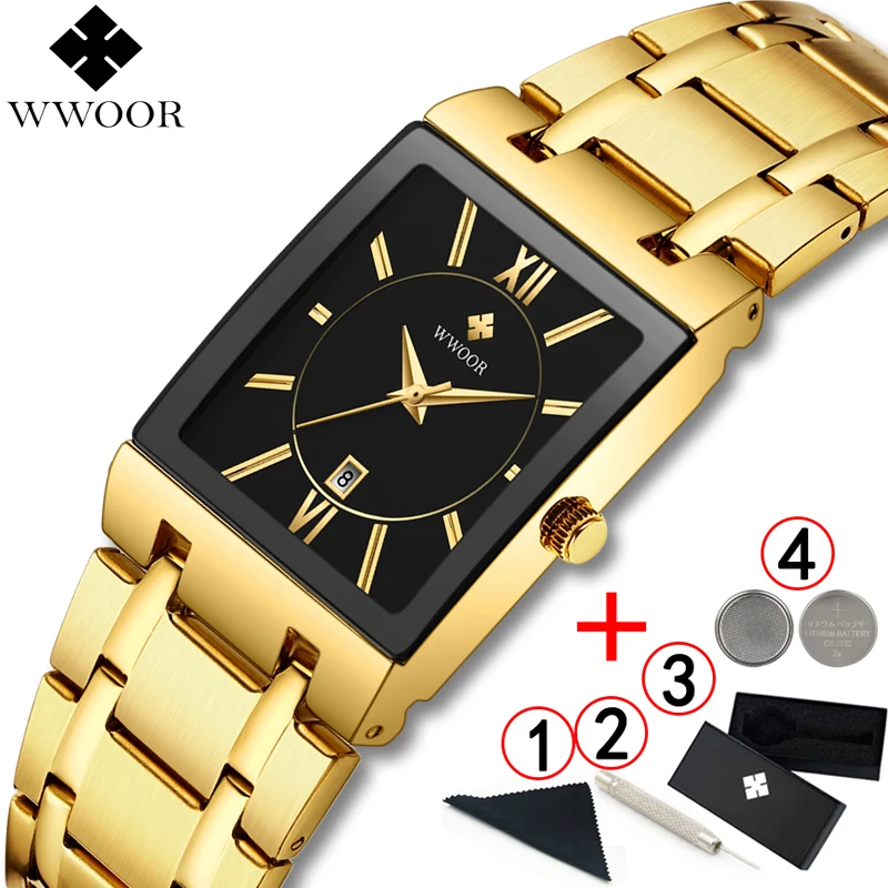 1x100% WWOOR Брендовые Часы 1 x инструмент для регулировки ремешка часов 1 x оригинальная коробка 1 запасная батарея 1 x чистая ткань