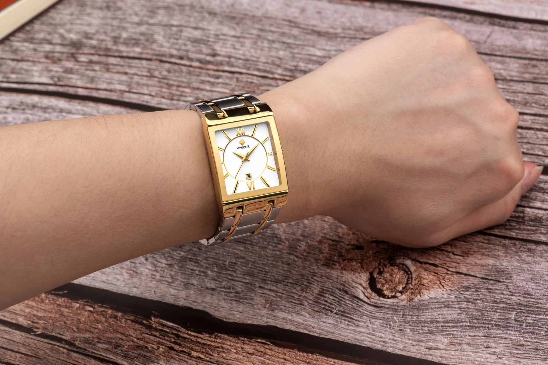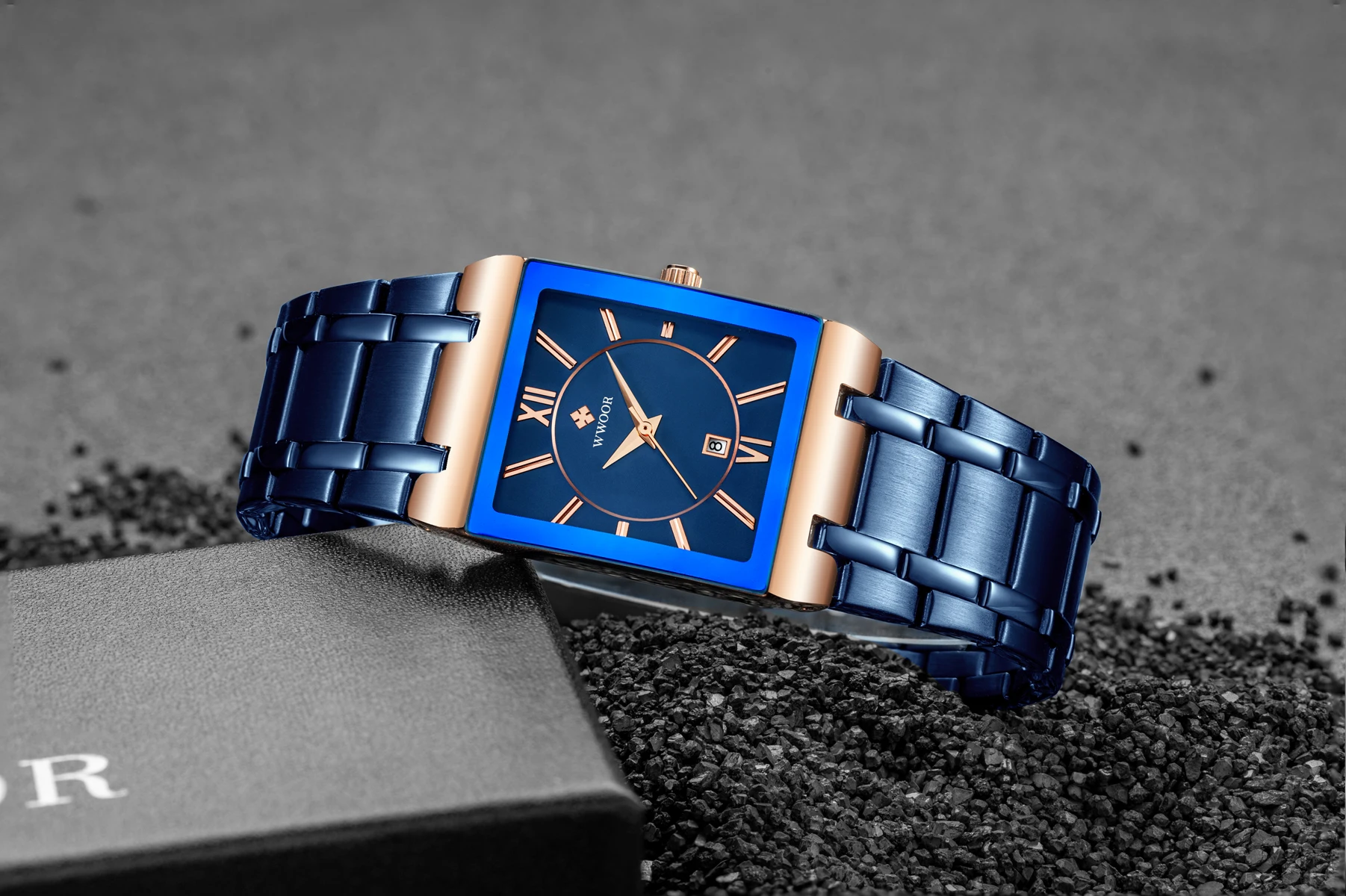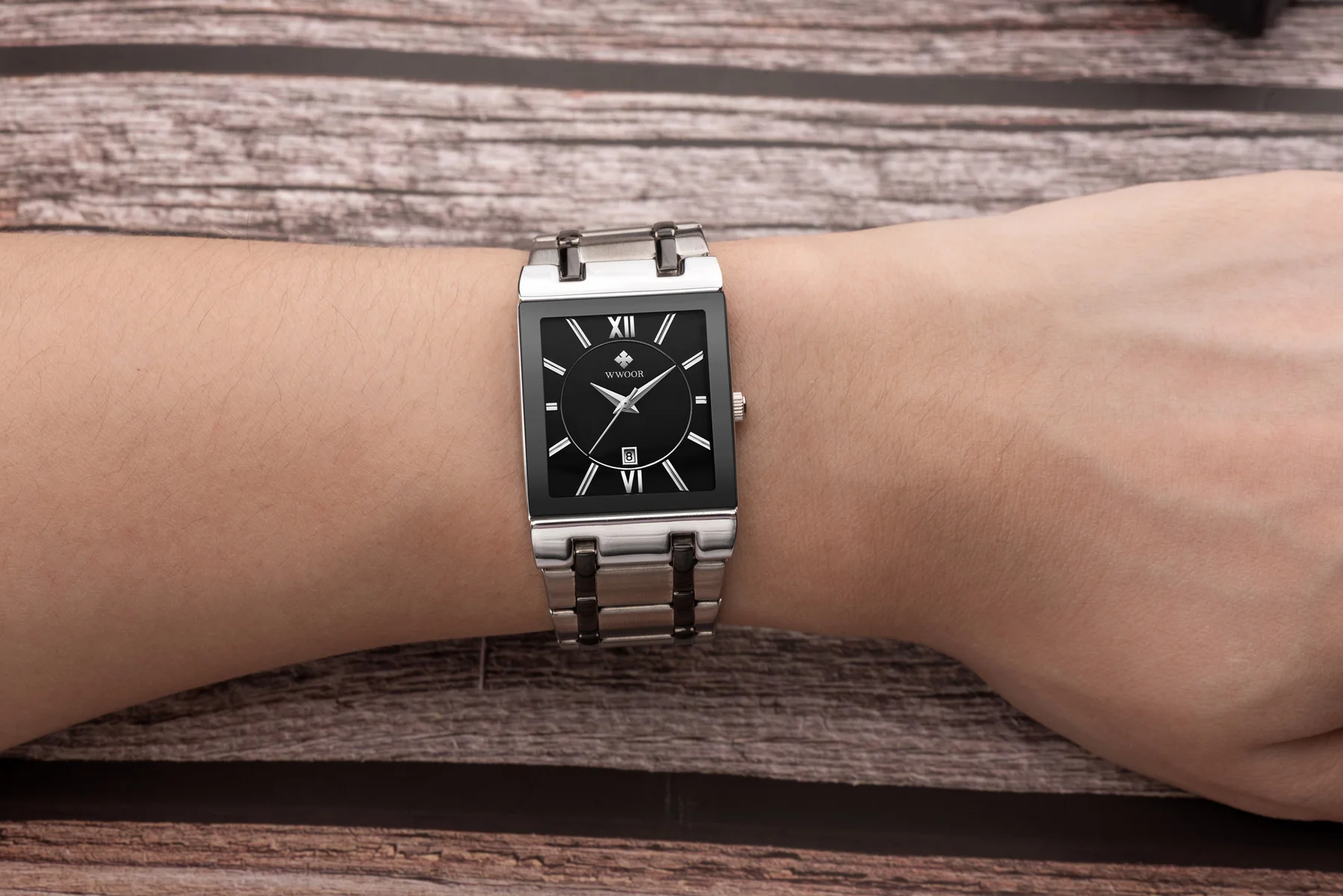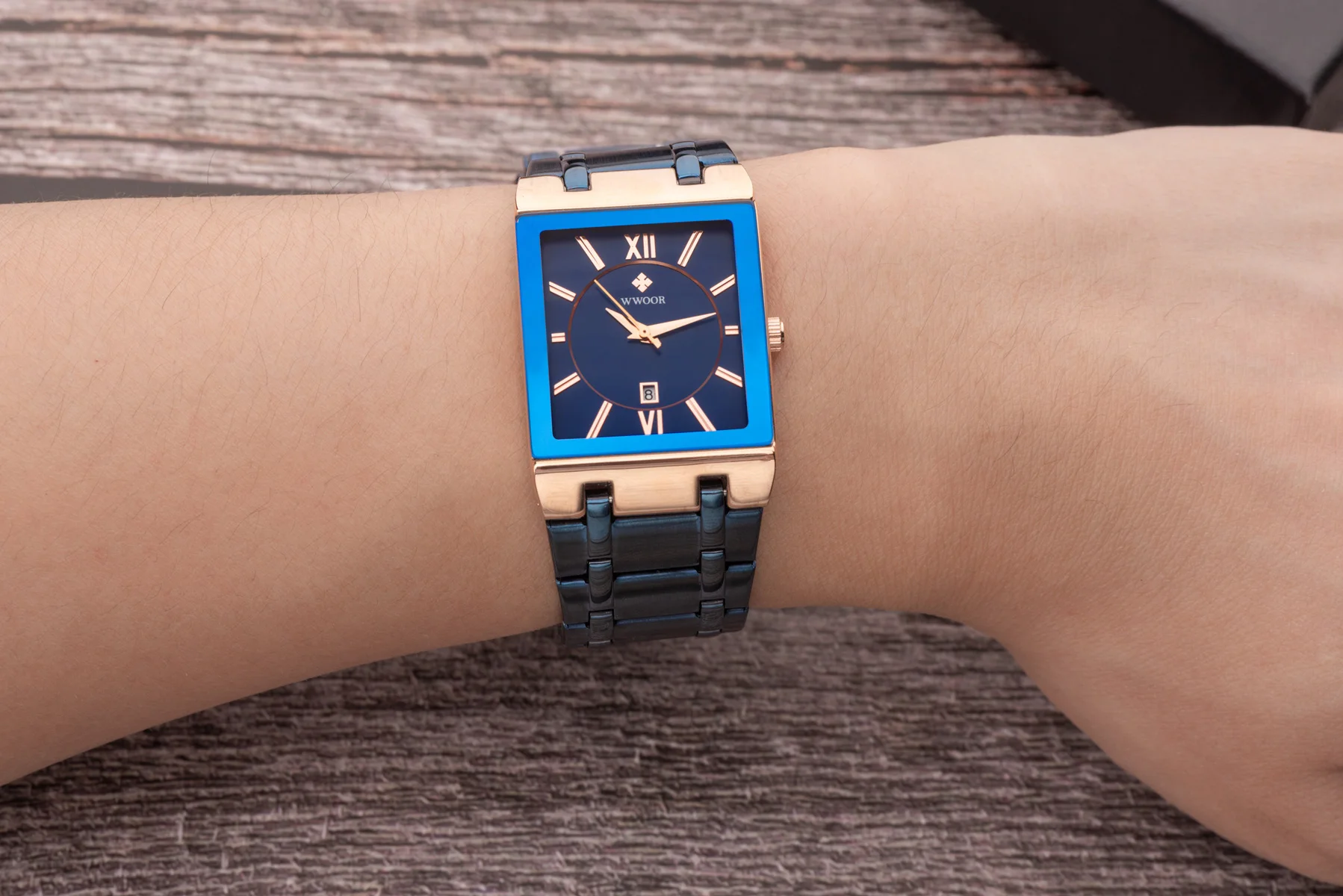 1x100% WWOOR Брендовые Часы 1 x инструмент для регулировки ремешка часов 1 x оригинальная коробка 1 запасная батарея 1 x чистая ткань