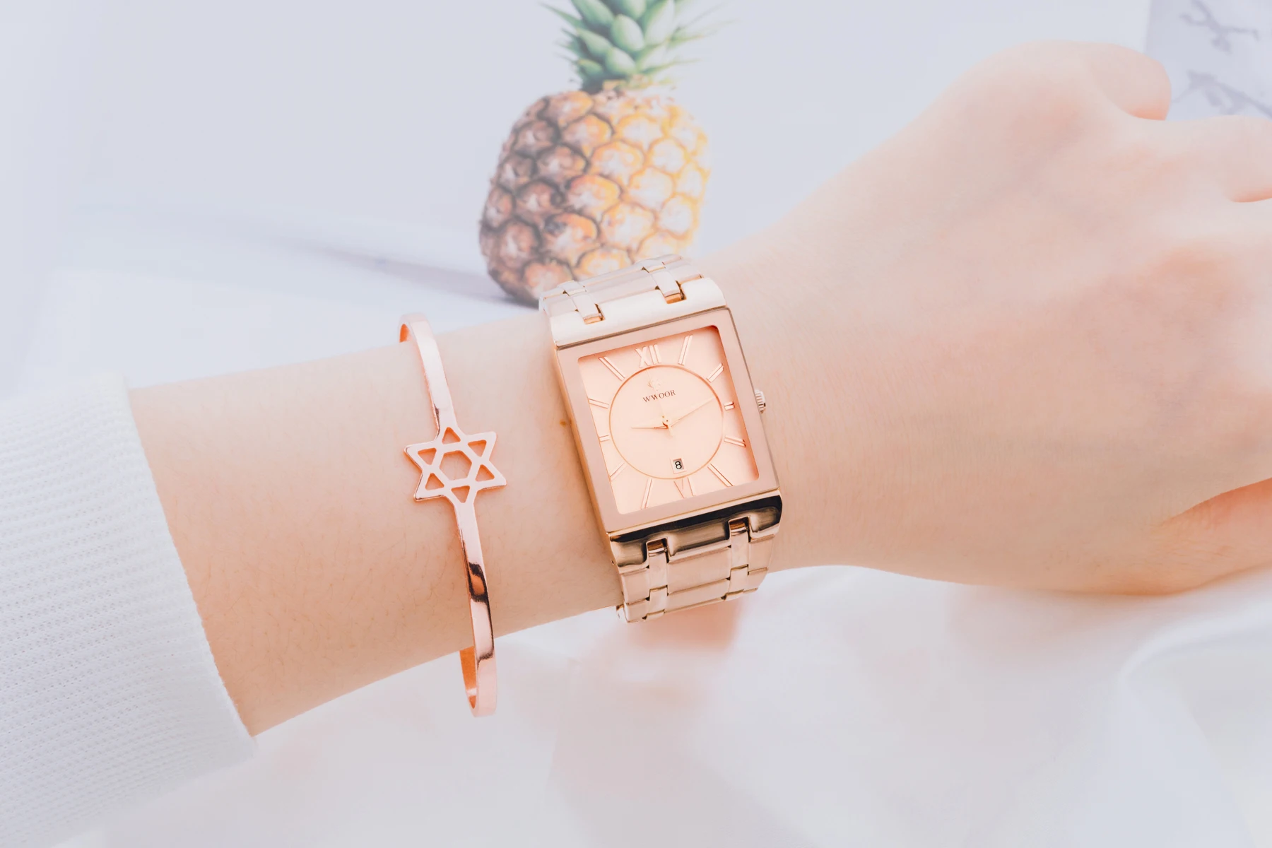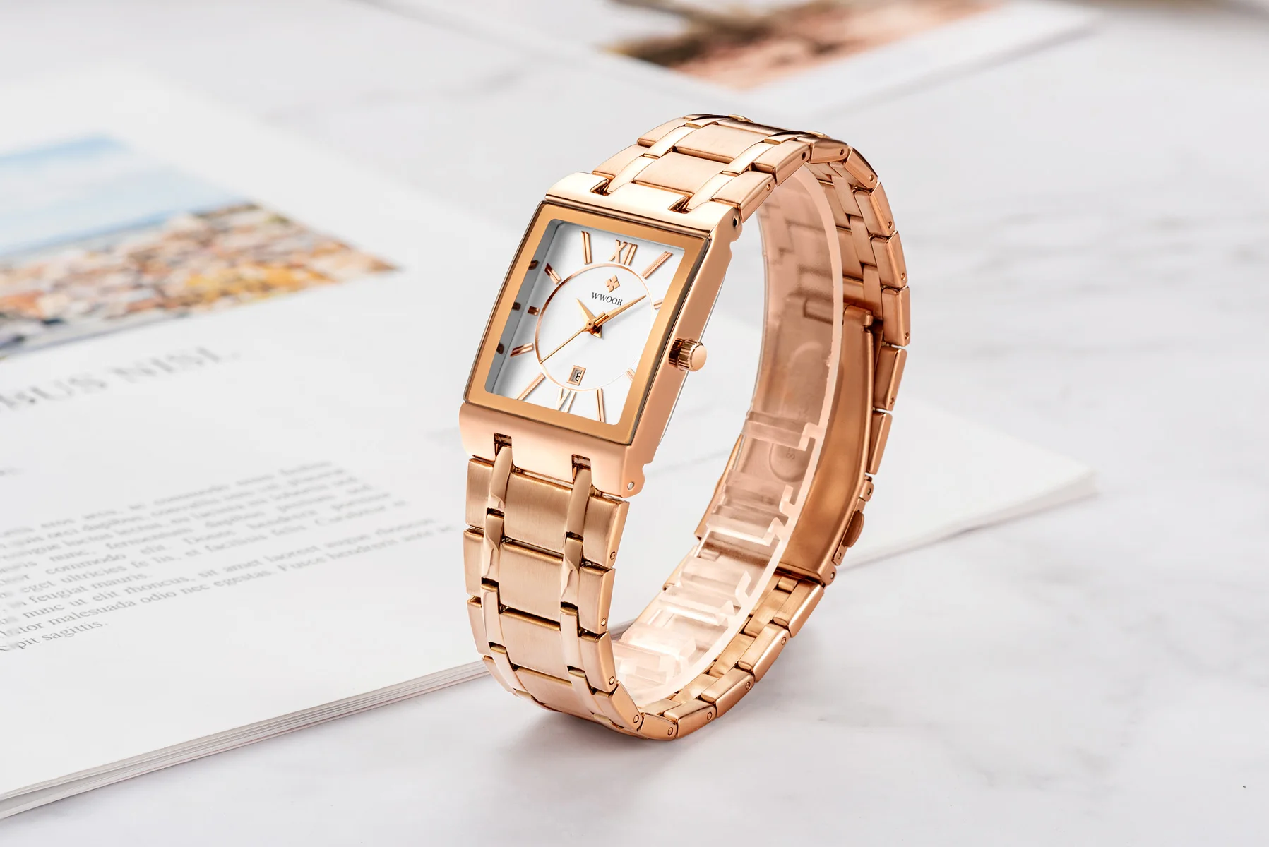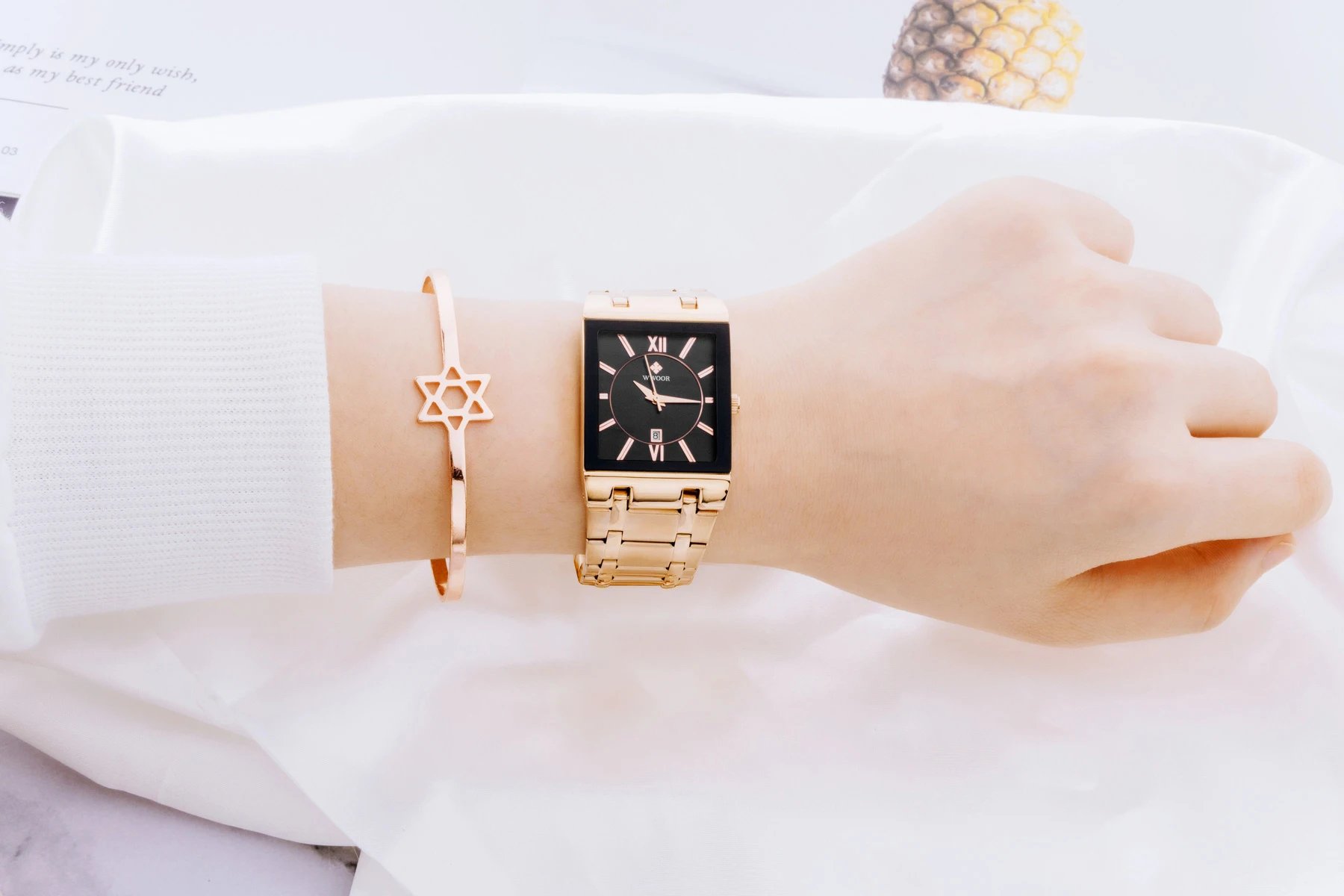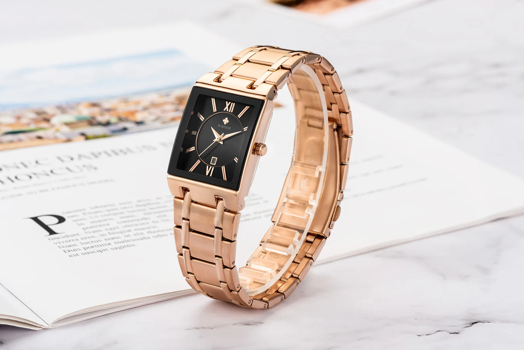 1x100% WWOOR Брендовые Часы 1 x инструмент для регулировки ремешка часов 1 x оригинальная коробка 1 запасная батарея 1 x чистая ткань