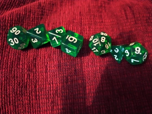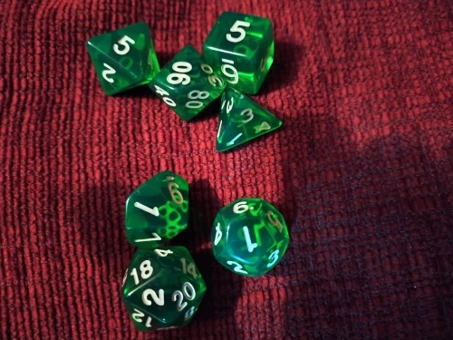 Комплекты желтого и зеленого цветов соответствуют описанию. Штампы немного больше, чем мой другой набор от другого производителя, однако размер не умаляет их. Я рекомендую эти кости, если вы хотите доступный набор, который является прозрачным n' блестящим, и может ждать месяц, чтобы получить. Кости настолько прозрачные, что я могу держать их в руке и видеть комнату через них. -Mr. Кости человека