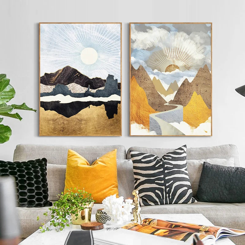 Пейзаж гор, природный пейзаж, искусство на холсте, абстрактные постеры и принты, закат, пейзаж, настенные картины, Декор для дома