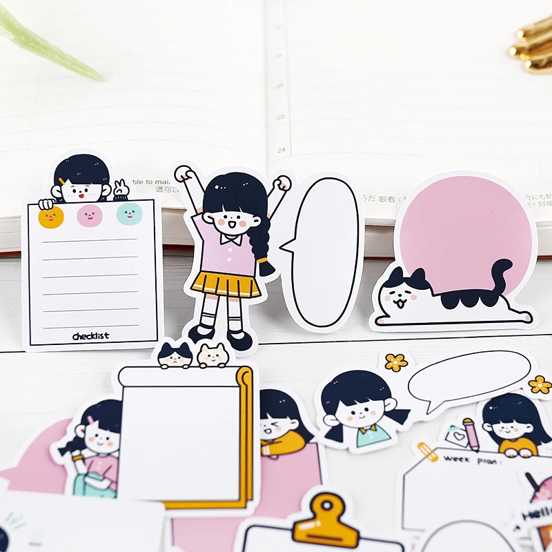 22 шт. активная девушка записи диалоговое окно наклейки на стену ручная книга отделанные маленькой клеткой в стиле узор ручной книга прекрасный с принтом сердечки для маленькой девочки материал посылка
