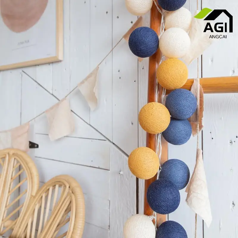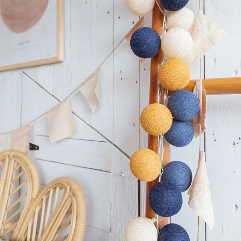 Гирлянда с хлопковыми шариками, декоративный шнурок сделай сам для вечерние ринки, свадьбы, дома, сада, патио, темно-синяя, оранжевая, белая