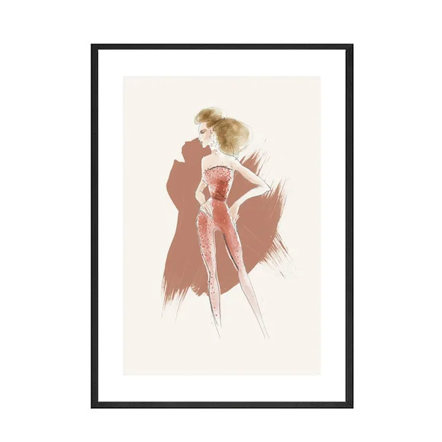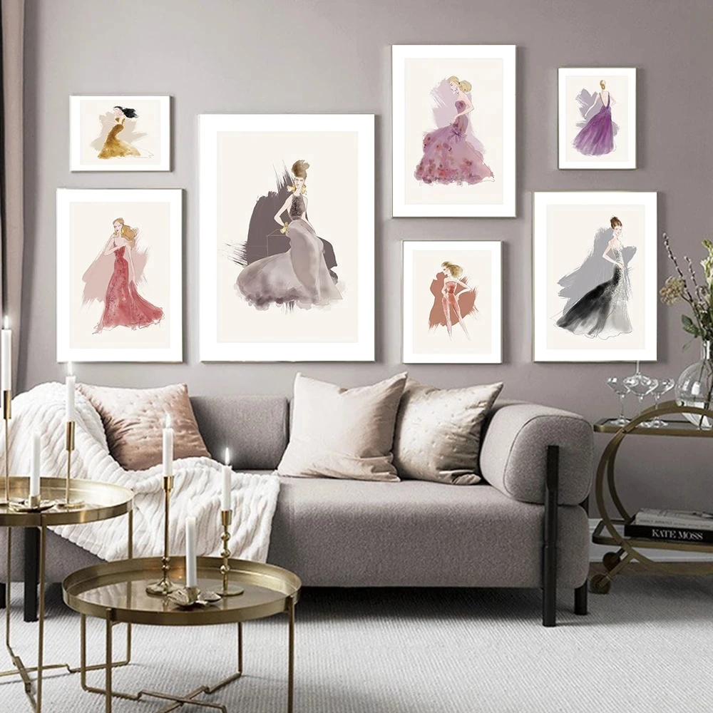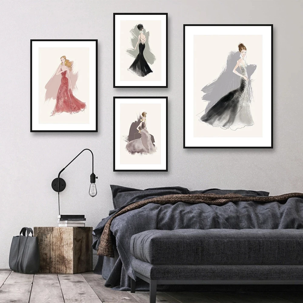 Плакат с мультяшным минималистичным рисунком стика, модное официальное платье, женская Картина на холсте, настенные картины для гостиной, домашний декор