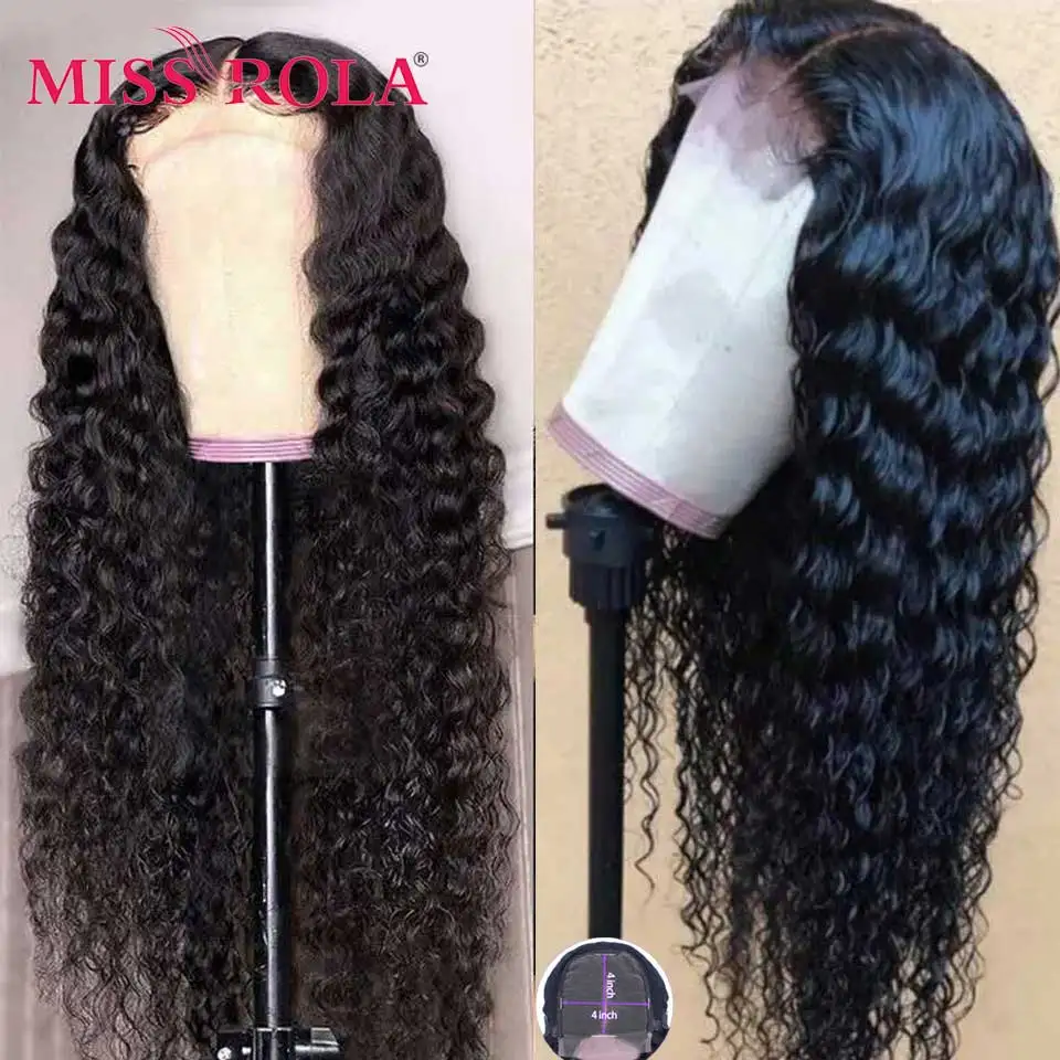 Парик Miss Rola с глубокой волной на сетке 4*4, парик из 100% натуральных волос, бразильский парик с неповрежденными волосами, плотность 150%, предварительно выщипанные Детские волосы